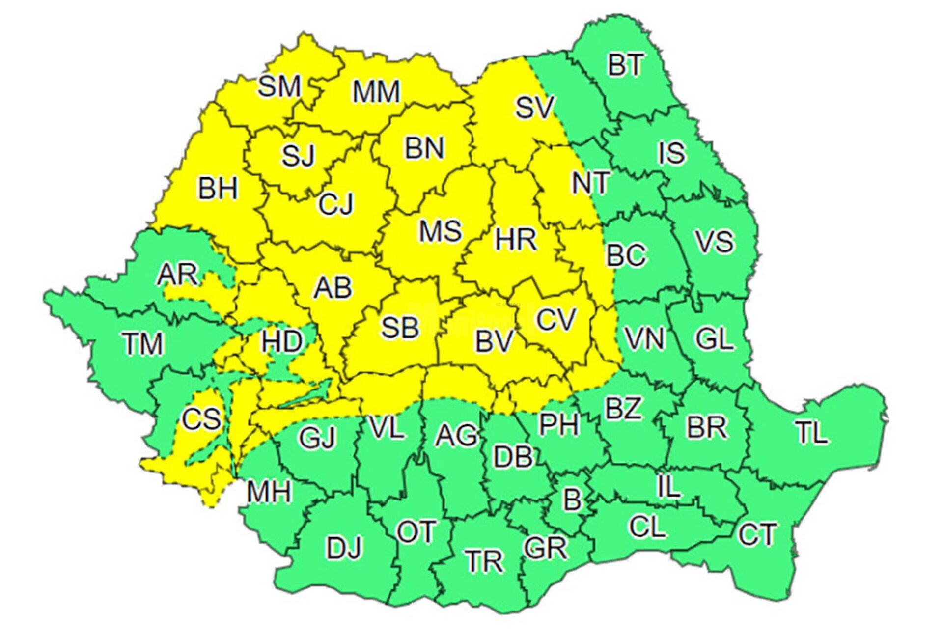 În funcție de evoluția și intensitatea fenomenelor meteorologice, Administrația Națională de Meteorologie va actualiza informațiile.