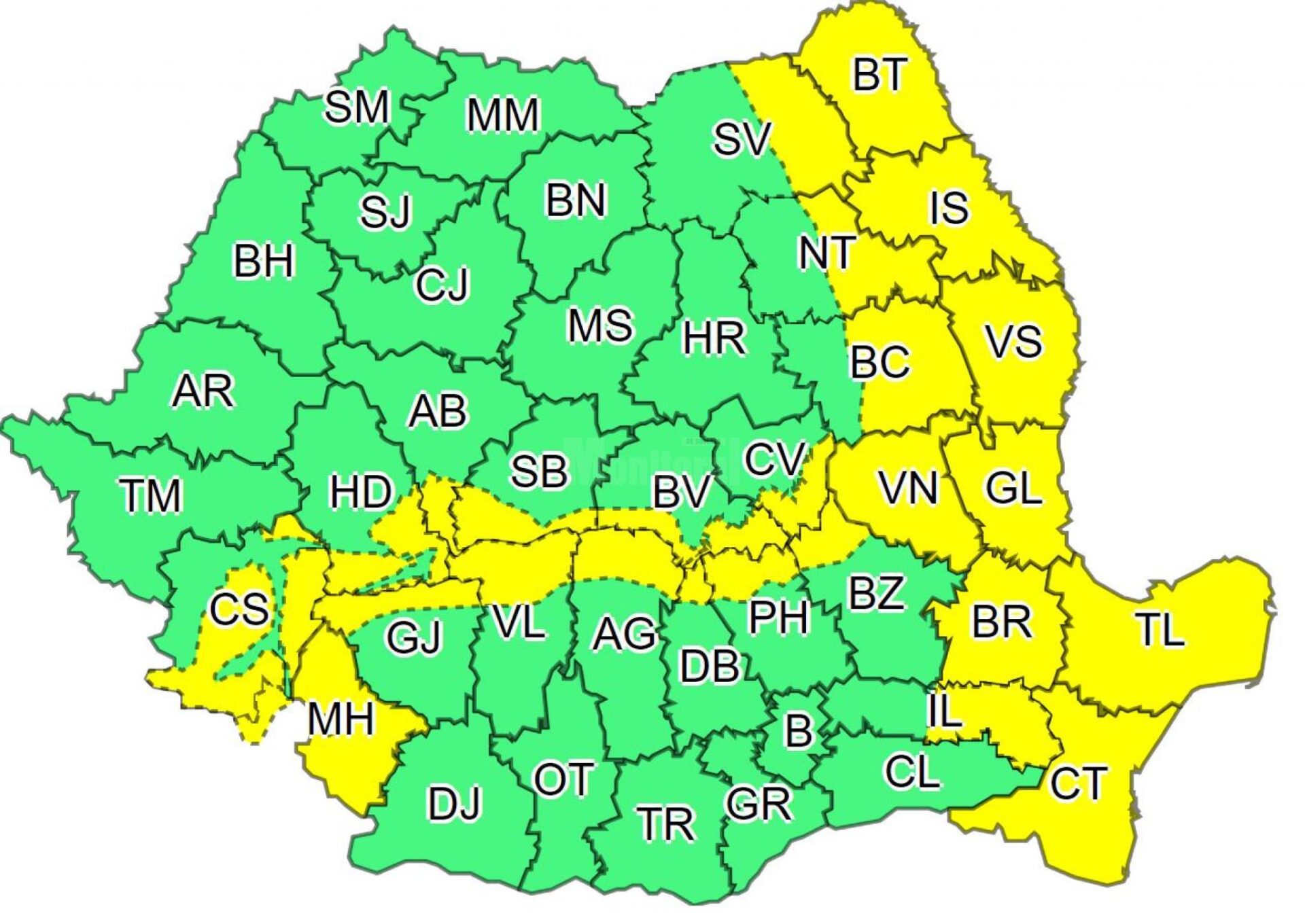 Meteorologii au anunțat că județul Suceava este sub atenționare de Cod galben de vânt puternic până diseară, la ora 21:00. Administrația Națională de Meteorologie a transmis căîn Dobrogea, cea mai mare parte a Moldovei, în nord-estul Munteniei și local la munte, vântul va avea intensificări susținute, cu viteze de 55…65 km/h, iar pe creste, în special ale Carpaților Meridionali, temporar rafalele vor depăși 90…100 km/h.Intensificări locale și temporare ale vântului vor fi și în centrul și sudul teritoriului, cu viteze în general de 45…55 km/h.