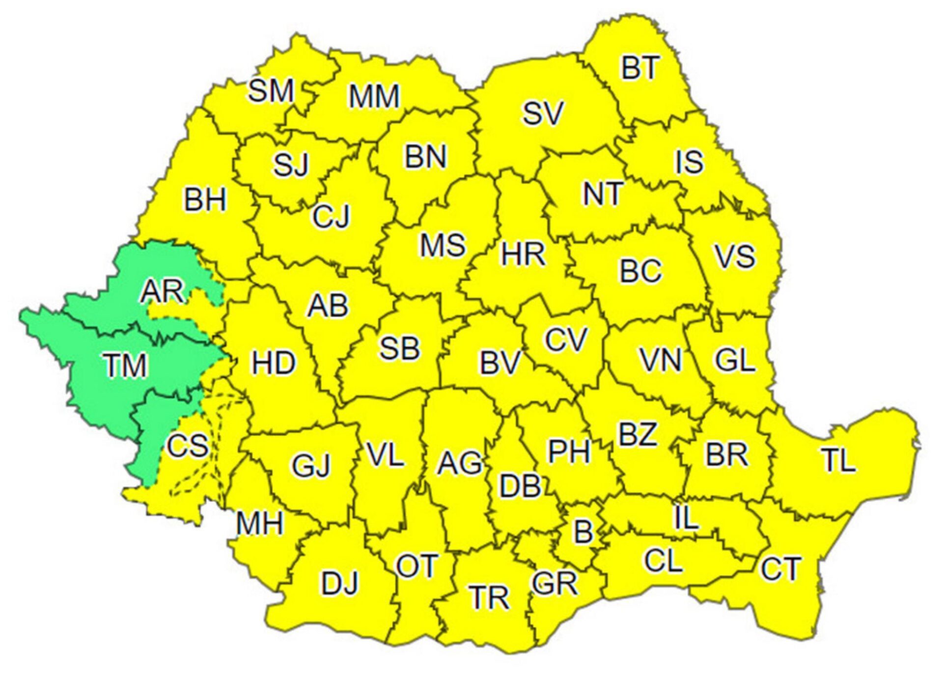 În funcție de evoluția și intensitatea fenomenelor meteorologice, Administrația Națională de Meteorologie va emite avertizări de vreme severă imediată.