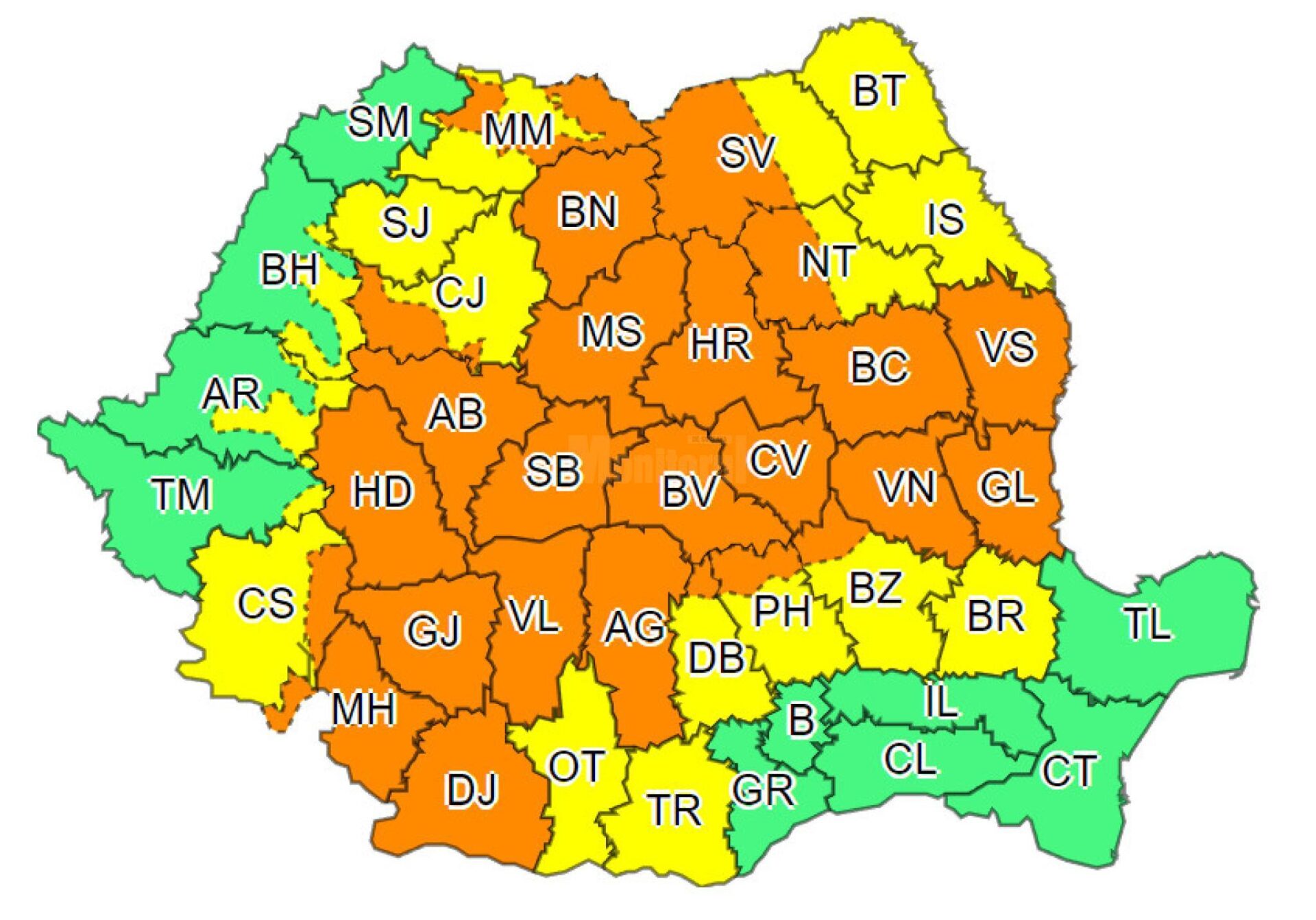 Administrația Națională de Meteorologiea emis marți o nouă avertizare meteorologică de tip cod galben, dar și una de tip portocaliu, de furtuni și ploi abundente, valabile în intervalul de timp 30 august, ora 10:00 – 31 august, ora 10:00.