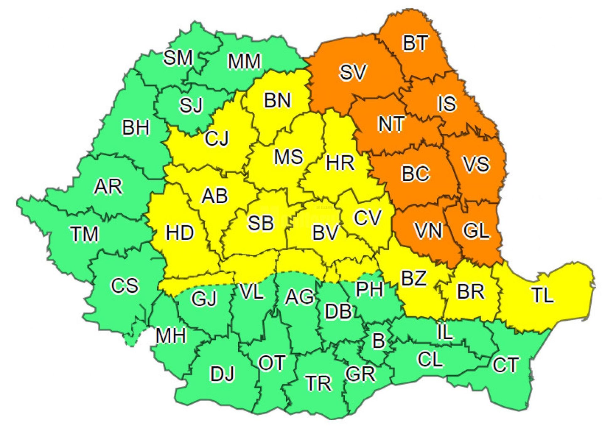 Administrația Națională de Meteorologie a emis luni dimineață o atenționare meteorologică de tip Cod Portocaliu, valabilă în opt județe, inclusiv Suceava, care vizează fenomene meteo precum vijelii puternice, grindină, averse torențiale, pentru ziua de 2 august, între orele 13:00 – 22:00.