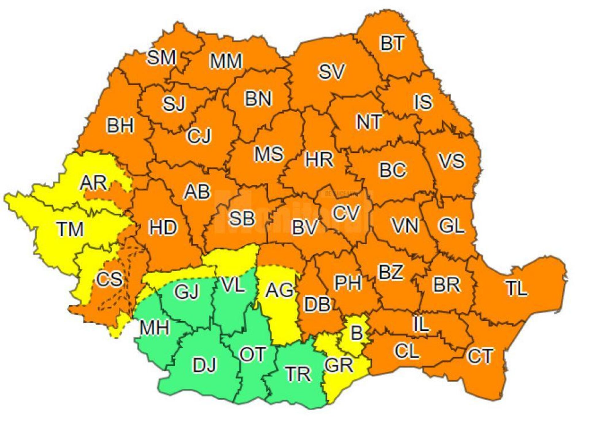 Cod portocaliu de vreme rea pentru trei sferturi din țară, inclusiv Suceava