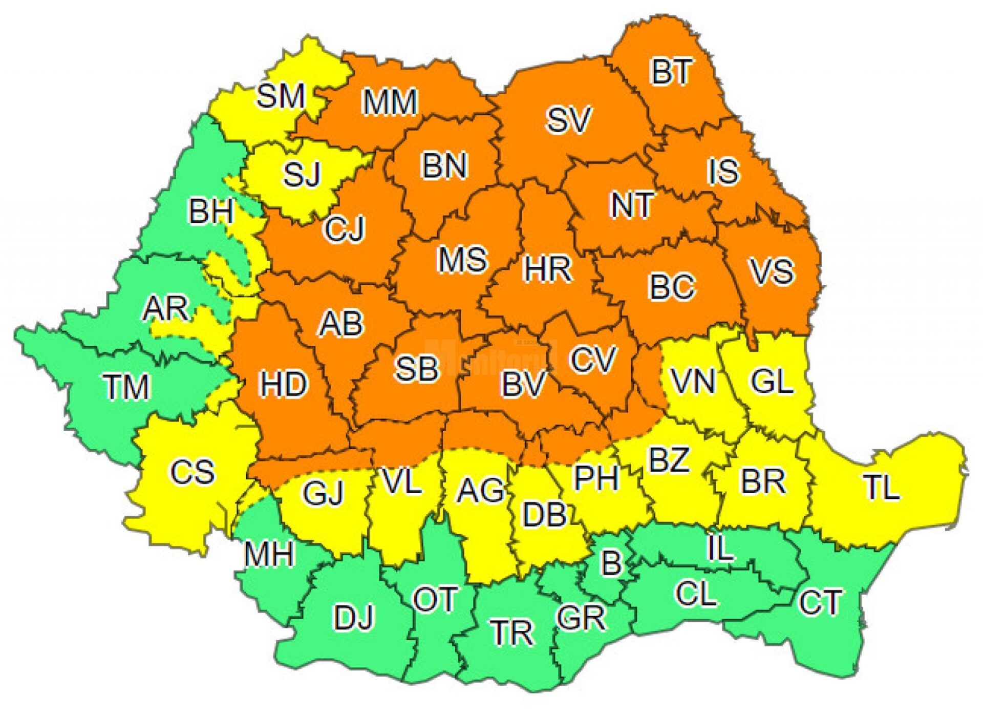 Administrația Națională de Meteorologie a emis marți dimineață noi atenționări meteorologice de vreme rea, valabile în cea mai mare parte a țării.