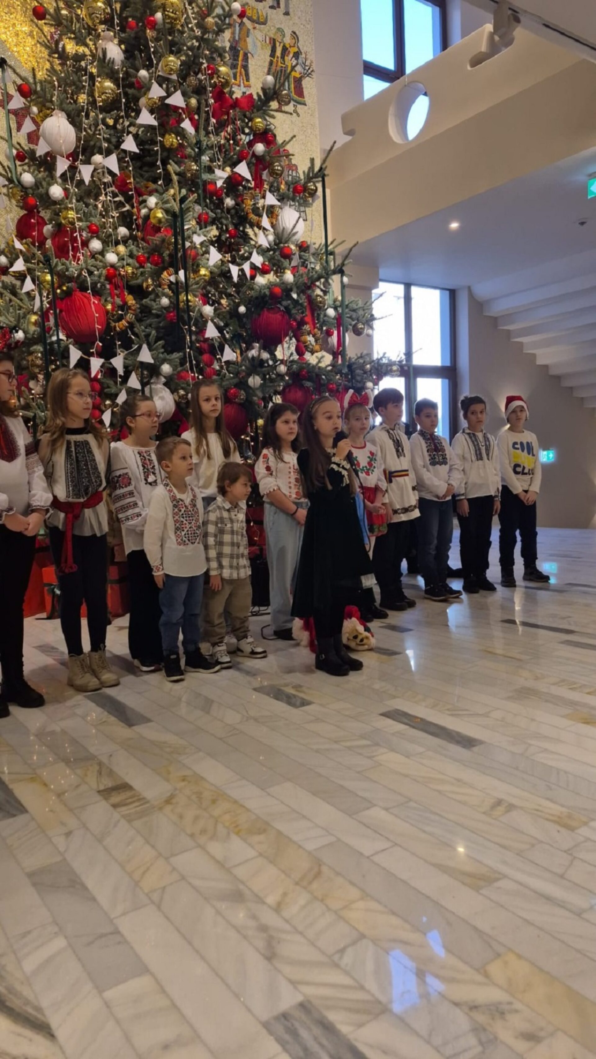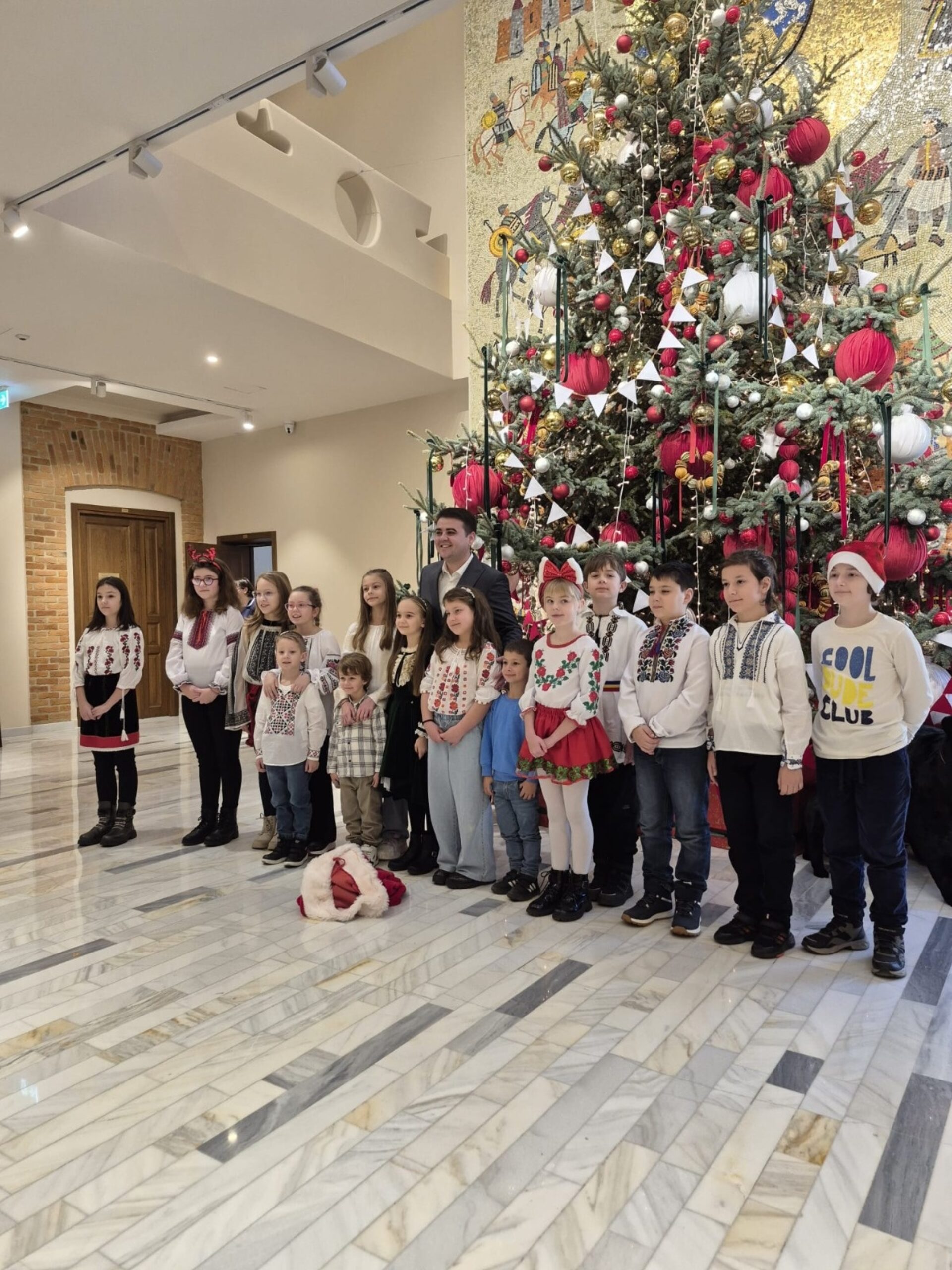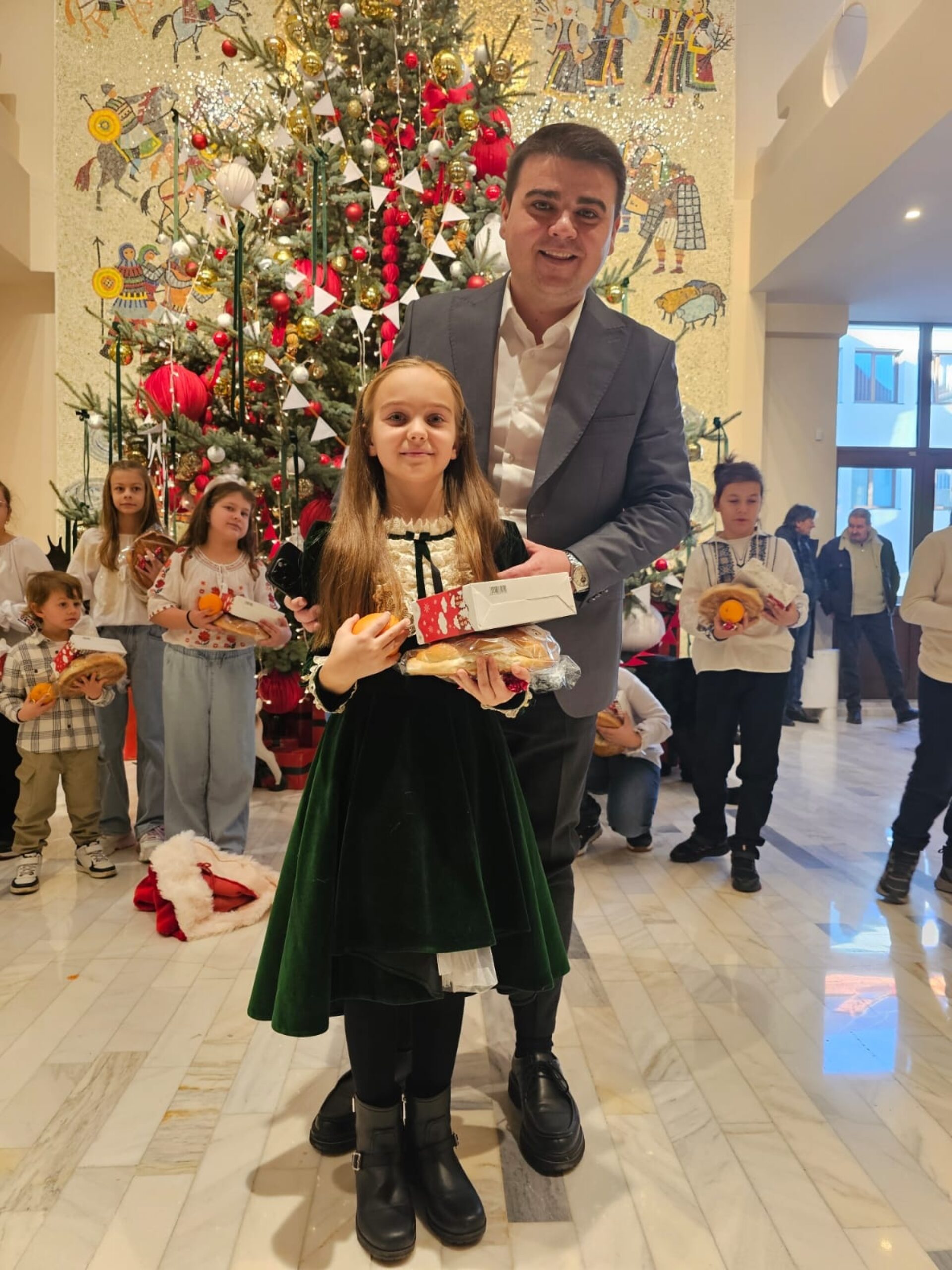 Coordonați de prof. înv. primar Anca Popescu, elevii au colindat reprezentanții CJ, vineri, 19 decembrie, iar la finalul programului i-au dăruit lui Gheorghe Șoldan o ie tradițională pentru fiul său, David Matei. Darul, realizat manual, are o valoare simbolică deosebită, fiind cusut de mână și sfințit la Mănăstirea Sihăstria Neamț.