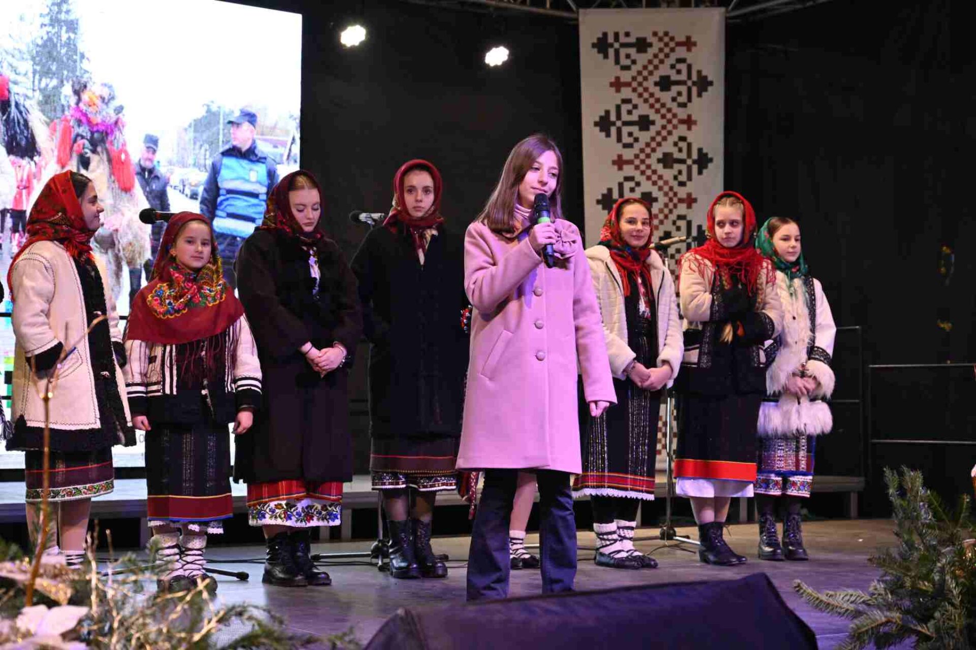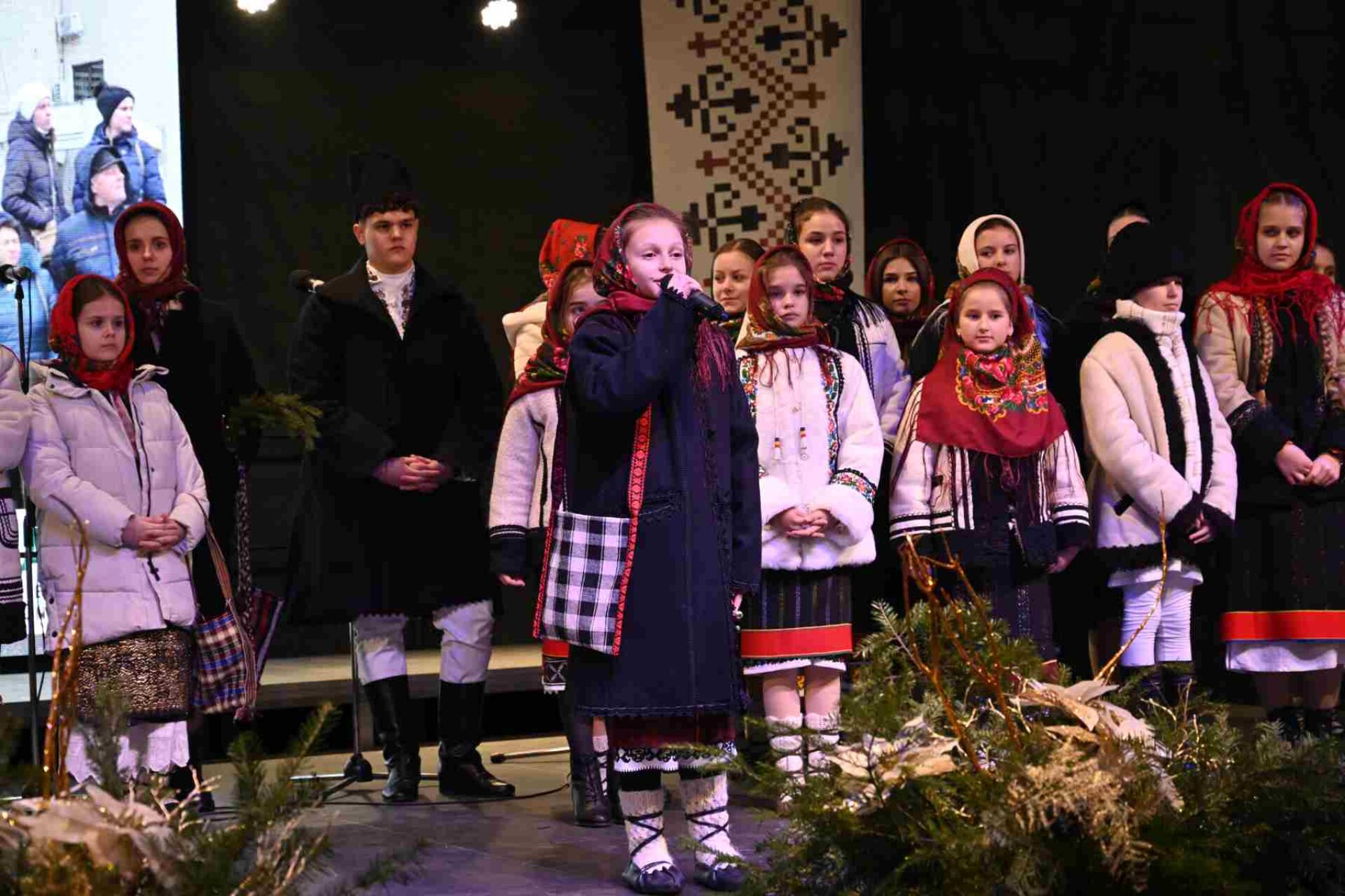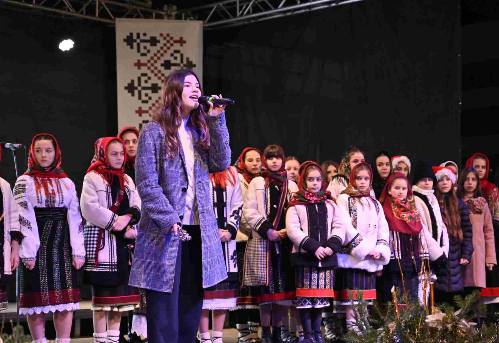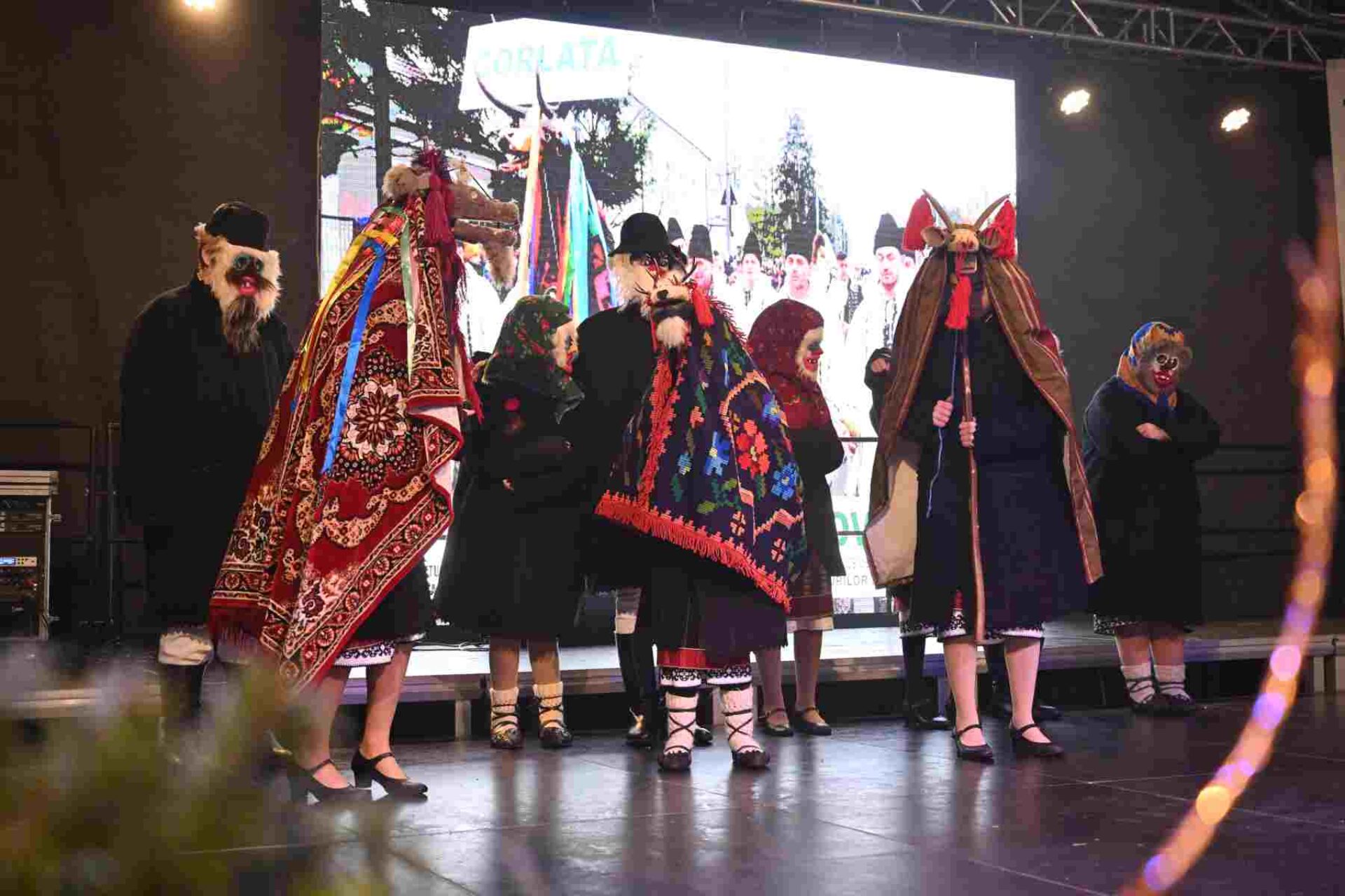 Elevii și profesorii Școlii Populare de Artă ”Ion Irimescu” Suceava au urcat pe scenă cu un program artistic variat, care a îmbinat frumoasele noastre colinde cu urături și jocuri tradiționale de iarnă, precum jocul caprei și al ursului.