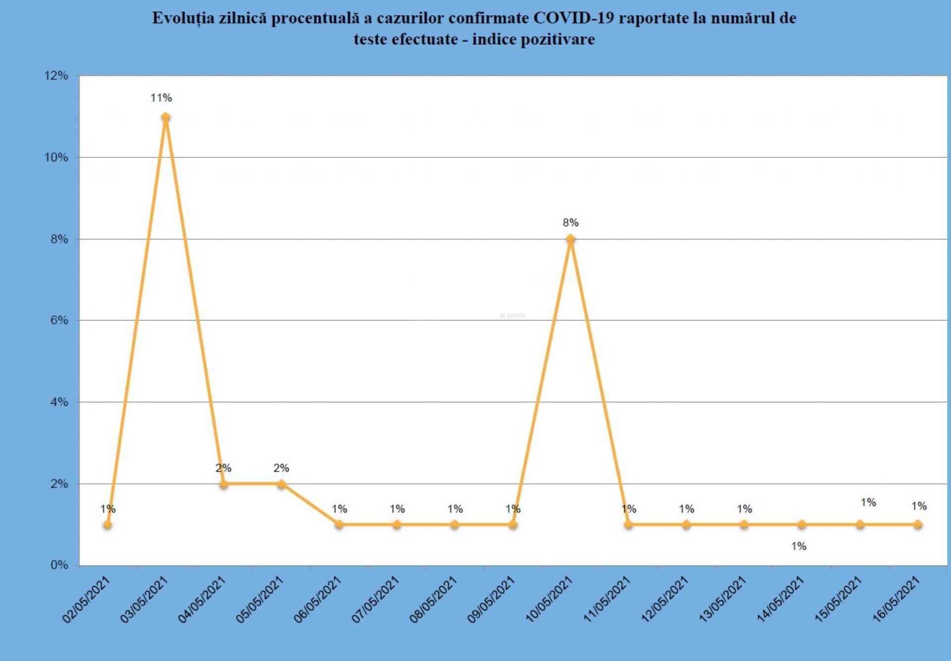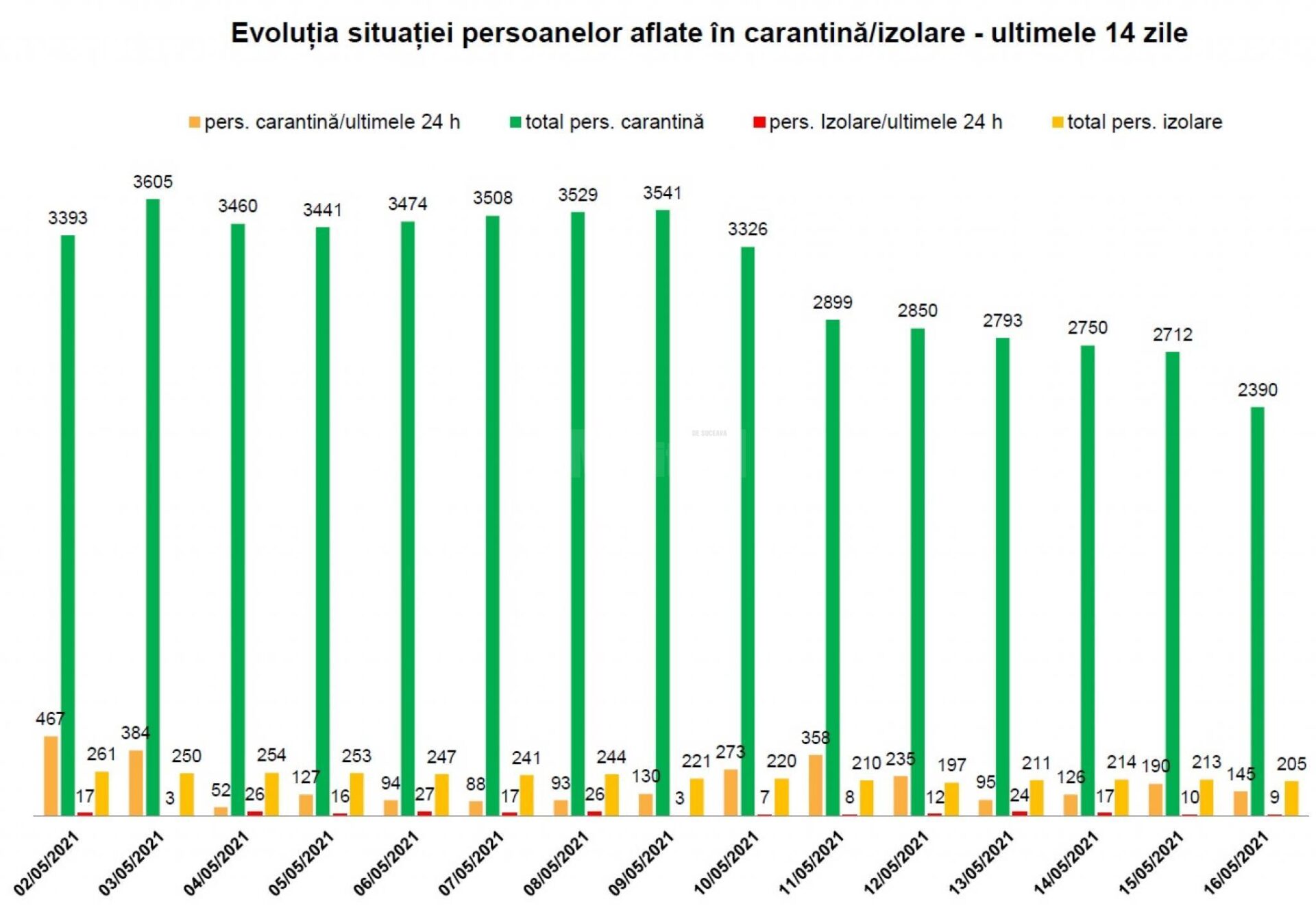 Prefectura Suceava a transmis că o singură localitate din județ se află în scenariul roșu, cu o rata de infectare mai mare de trei cazuri la mia de locuitori. Este vorba de comuna Șaru Dornei, unde rata de infectare raportată astăzi este de 3,33 cazuri de Covid la mia de locuitori. În județ mai sunt trei comune în scenariul galben, respectiv Dorna Arini cu o incidență cumulată a cazurilor în ultimele 14 zile de 1,7 la mie, Fântâna Mare – 1,93 și Panaci – 1,79.