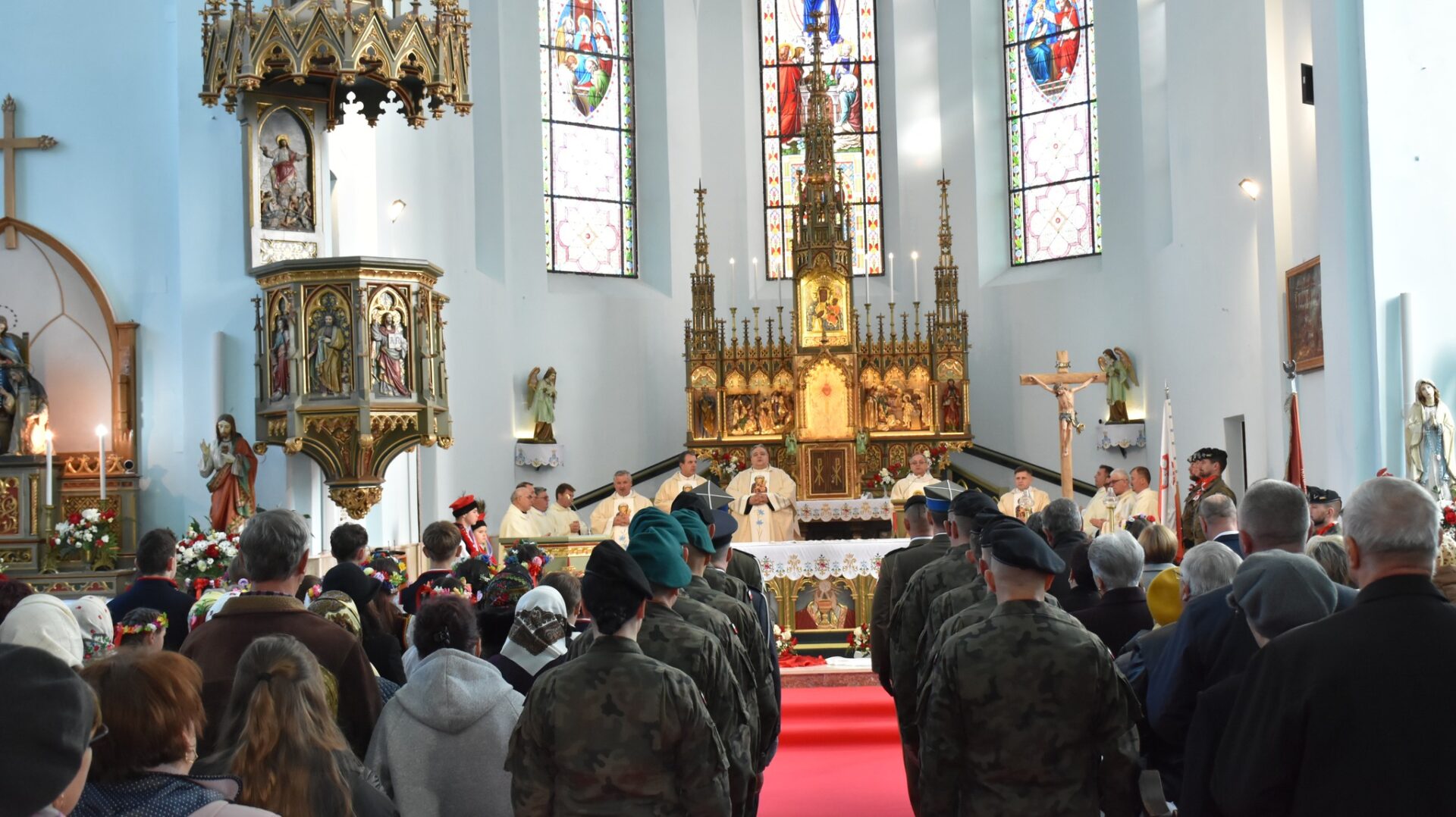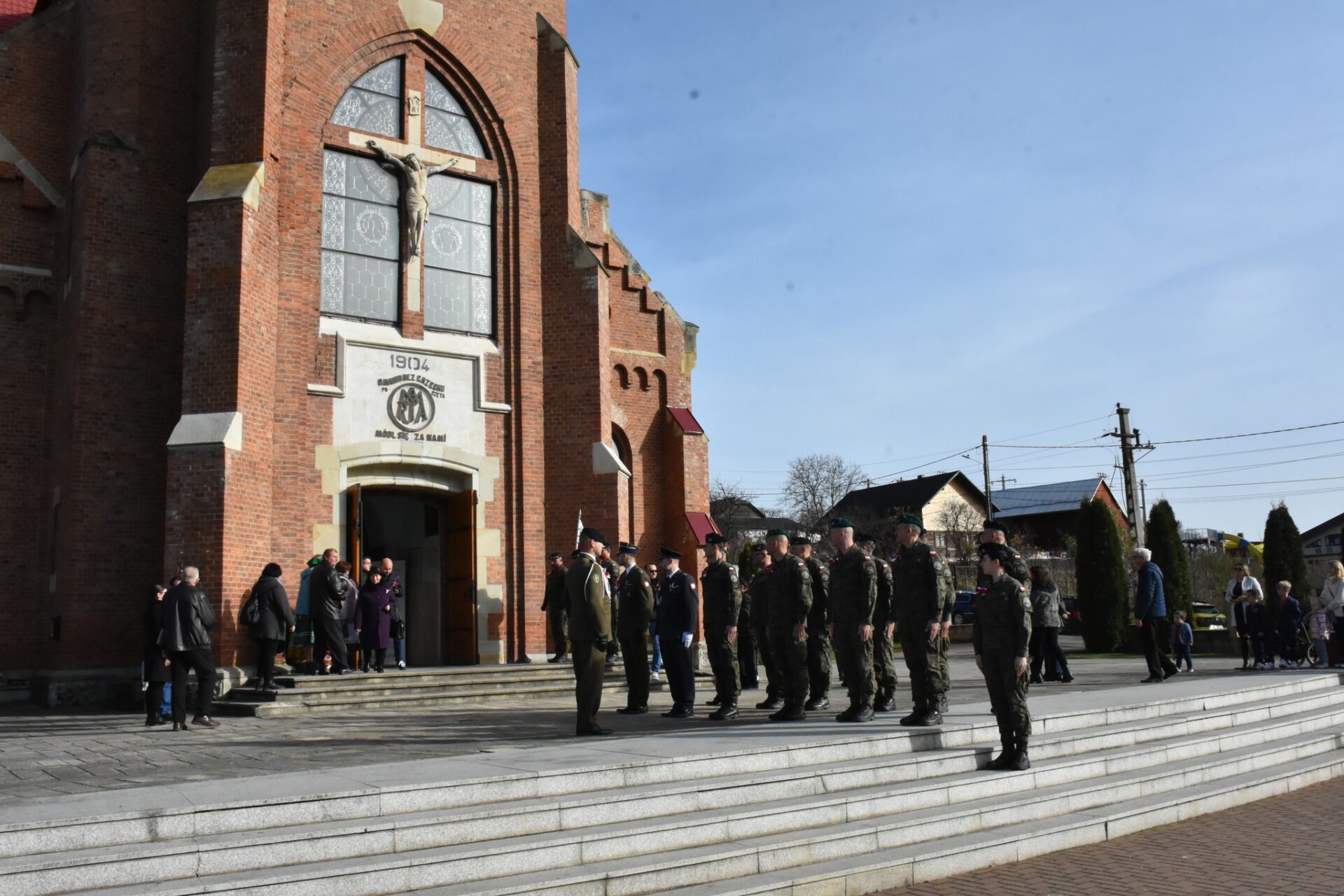 Ceremonia a continuat cu o Sfântă Liturghie solemnă în intenția Patriei la Biserica „Adormirea Maicii Domnului” din Cacica, oficiată de pr. dr. Stanislav Ioan Cucharec, capelanul polonezilor din dieceza de Iași, capelanul Contingentului Militar Polonez pr. locotenent Tomasz Nobis și pr. Daniel Cătălin Romila, paroh la Cacica. La slujbă au concelebrat preoți din întregul decanat de Bucovina.