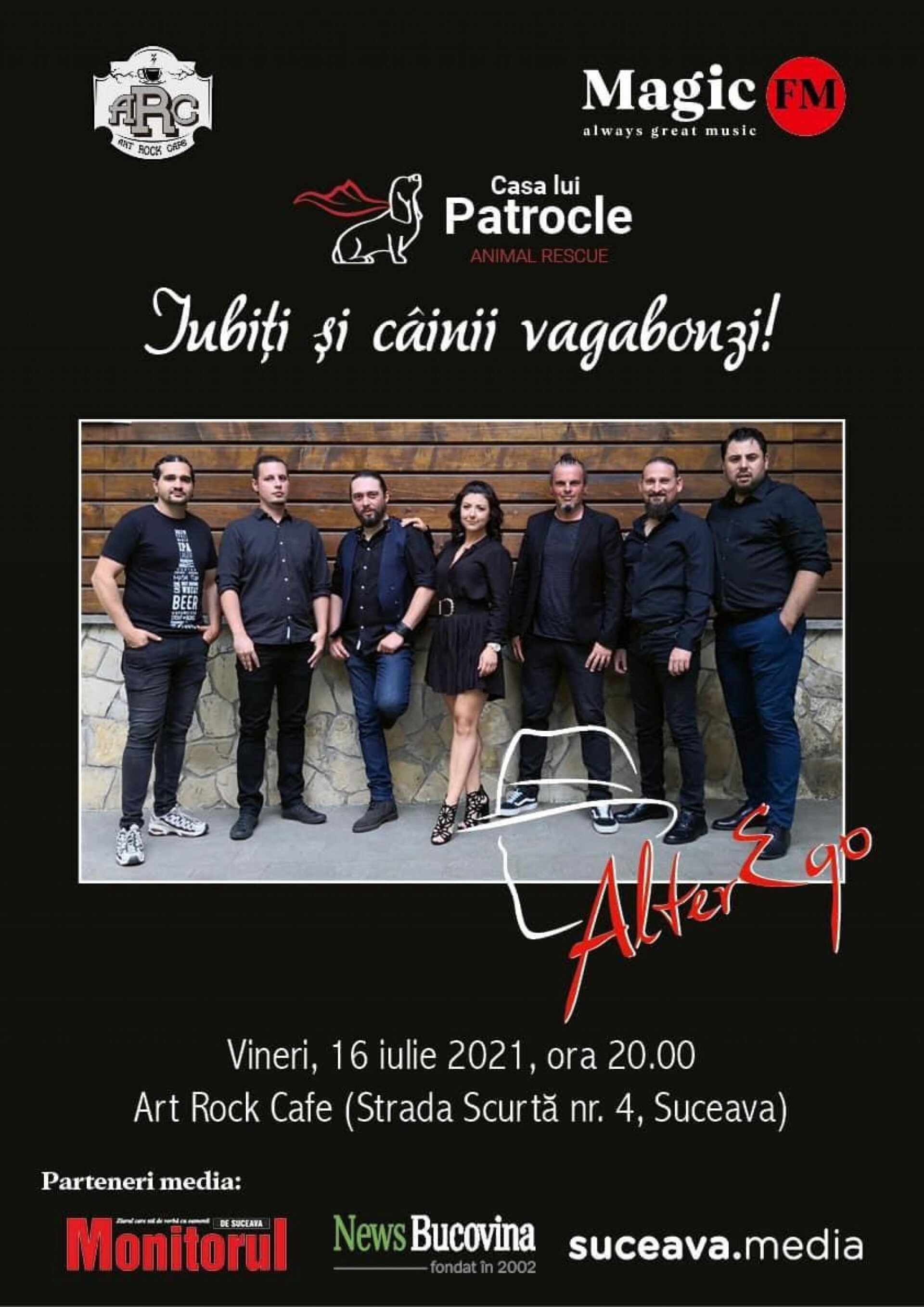 „Iubiți și câinii vagabonzi” va avea loc vineri, 16 iulie, de la ora 20.00, la Art Rock Cafe, invitați speciali fiind cei de la trupa Alter Ego.
