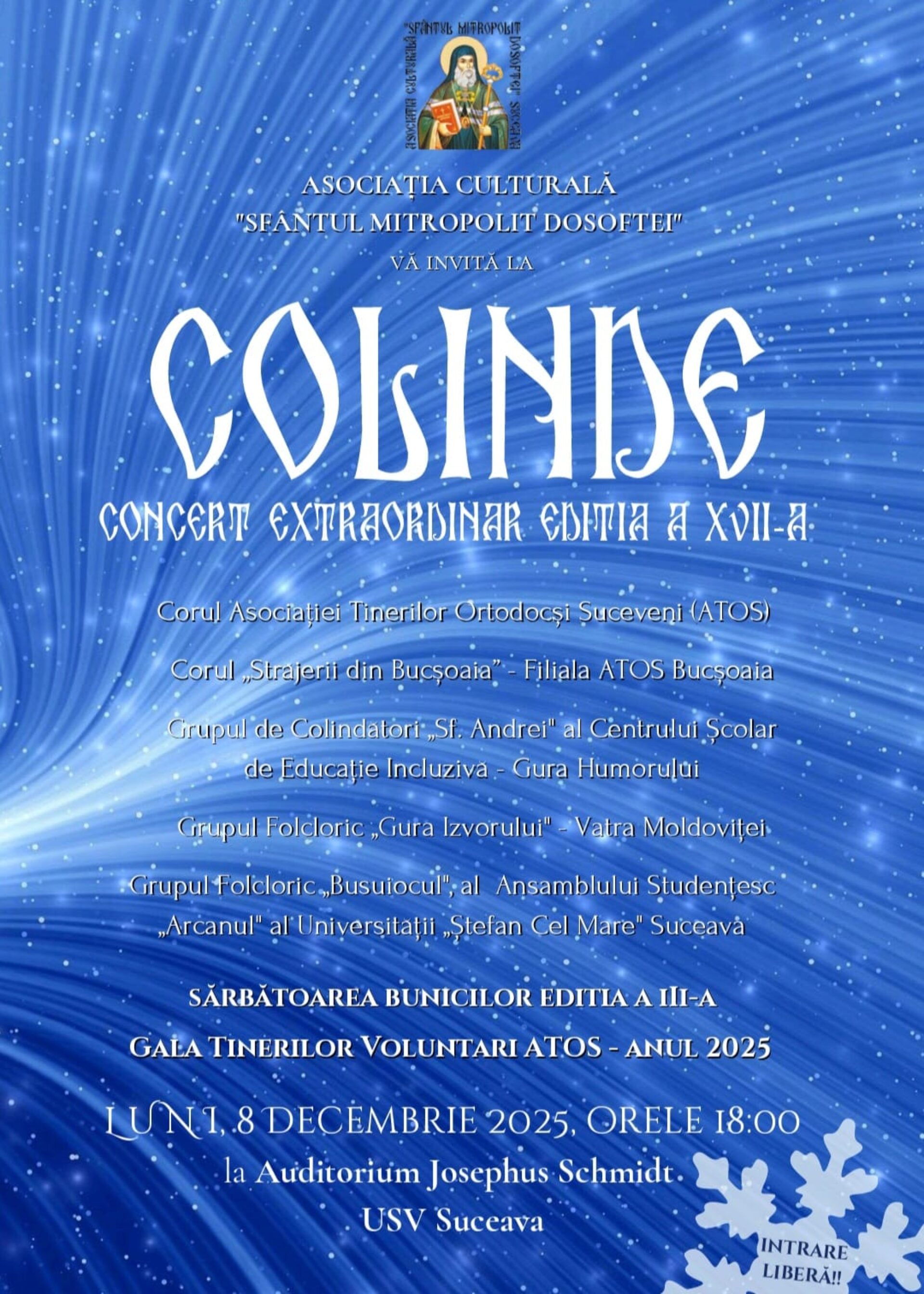 În cadrul evenimentului, vor fi organizate și „Sărbătoarea bunicilor”, ediția a III-a, și „Gala Tinerilor Voluntari ATOS”, ediția 2025. Pe scenă, vor evolua: Corul Asociației Tinerilor Ortodocși Suceveni (ATOS), Corul „Străjerii din Bucșoaia” (Filiala ATOS Bucșoaia), Grupul de Colindători „Sf. Andrei” al Centrului Școlar de Educației Incluzivă Gura Humorului, Grupul Folcloric „Gura Izvorului” Vatra Moldoviței, Grupul Folcloric „Busuiocul” al Ansamblului Studențesc Arcanul al Universității „Ștefan cel Mare” Suceava.