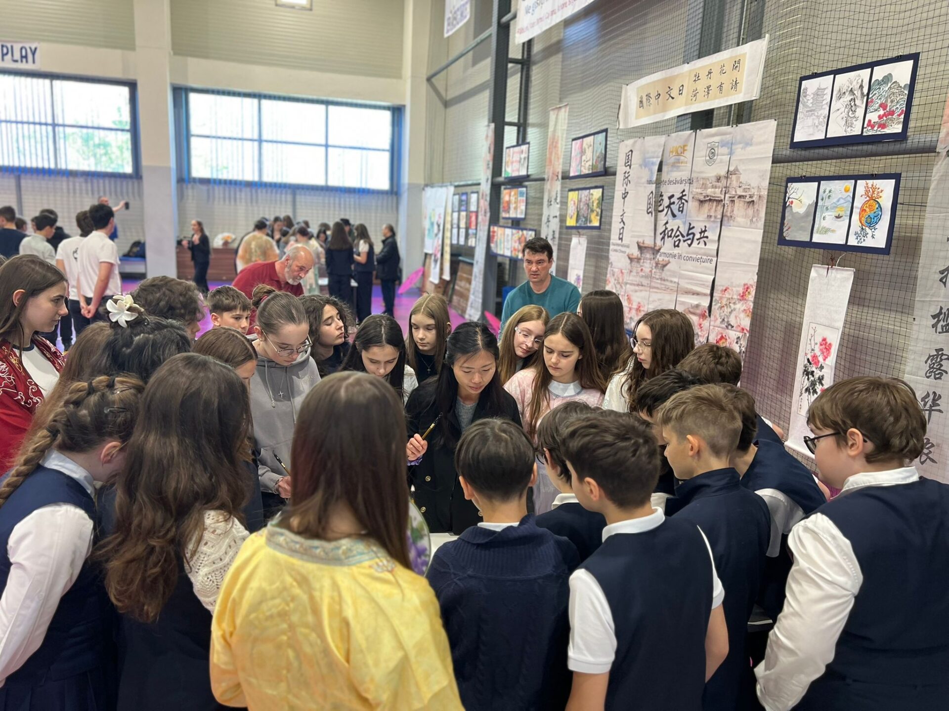 Evenimentul de vineri a inclus și o serie de activități interactive. Elevii au participat, sub îndrumarea profesorilor de limba chineză, la activități precum scrierea caligrafică și pictarea manuală a evantaielor.