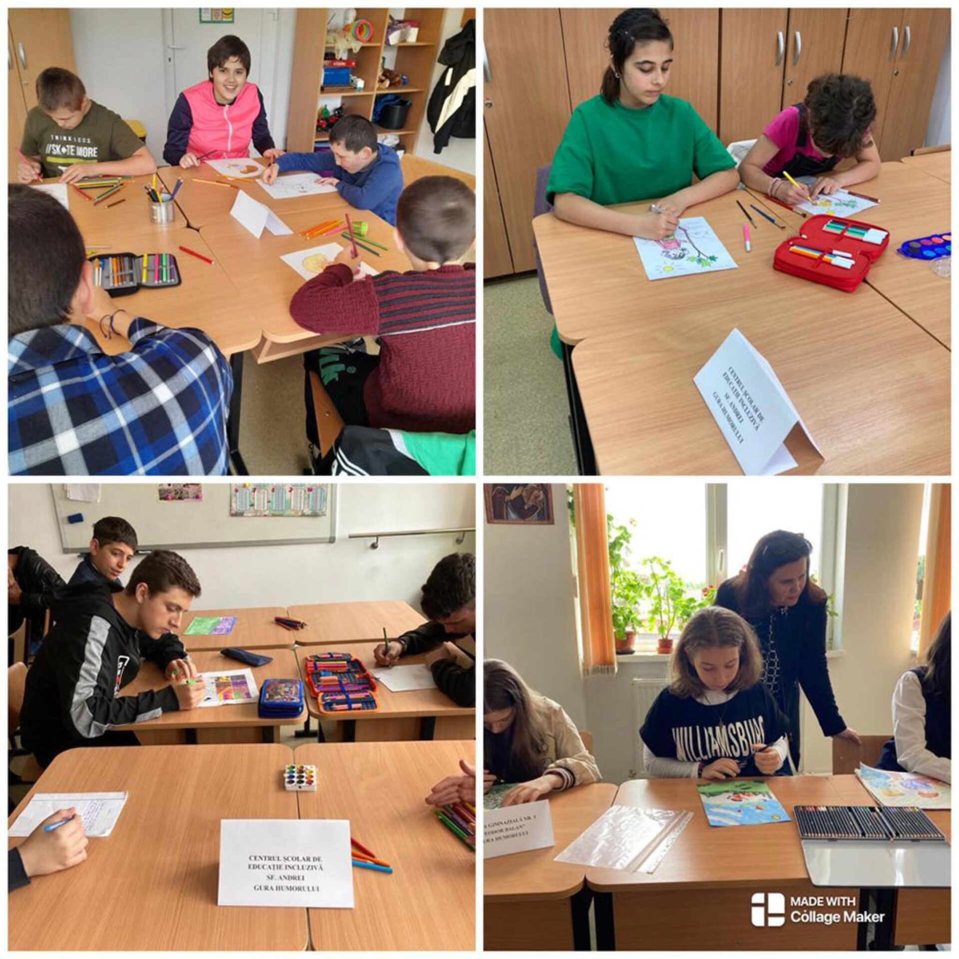 Elevii înscriși în concurs care au participat la etapa directă a acestuia, dar și elevii invitați s-au bucurat de un spectacol minunat oferit de elevii claselor a VI-a A și a V-a B de la CSEI „Sf. Andrei”, îndrumați de doamnele prof. Mîndrilă Gabriela și Dușa Antonia. Micii actori au prezentat o scenetă „S. O. S. Pământul” prin care au transmis participanților faptul că Pământul este planeta copiilor și că ei trebuie să aibă grijă de viitorul planetei. Ei au participat și la activitatea interactivă „Copilăria înseamnă … ”, prin care au încercat să ilustreze lumea minunată a copilăriei într-o reflecție a prieteniei. Au urmărit și o prezentare PPT a concursului, unde au admirat o parte din lucrările primite din țară, dar și impresii ale profesorilor îndrumători, din care menționez ceea ce ne-a transmis doamna prof. Pop Nicoleta Loredana, de la Grădinița cu Program Prelungit Șimleu Silvaniei: „Un concurs frumos care le dă posibilitatea și copiilor speciali să-și arate „puterile”. Vă mulțumesc și vă dorim mult succes!”, și doamna prof. Iacob Daniela, de la Liceul Pedagogic „Nicolae Iorga” Botoșani- „Un proiect care are ca scop integrarea preșcolarilor cu CES și care promovează drepturile egale pentru toți, aplicând principiul nondiscriminării.”