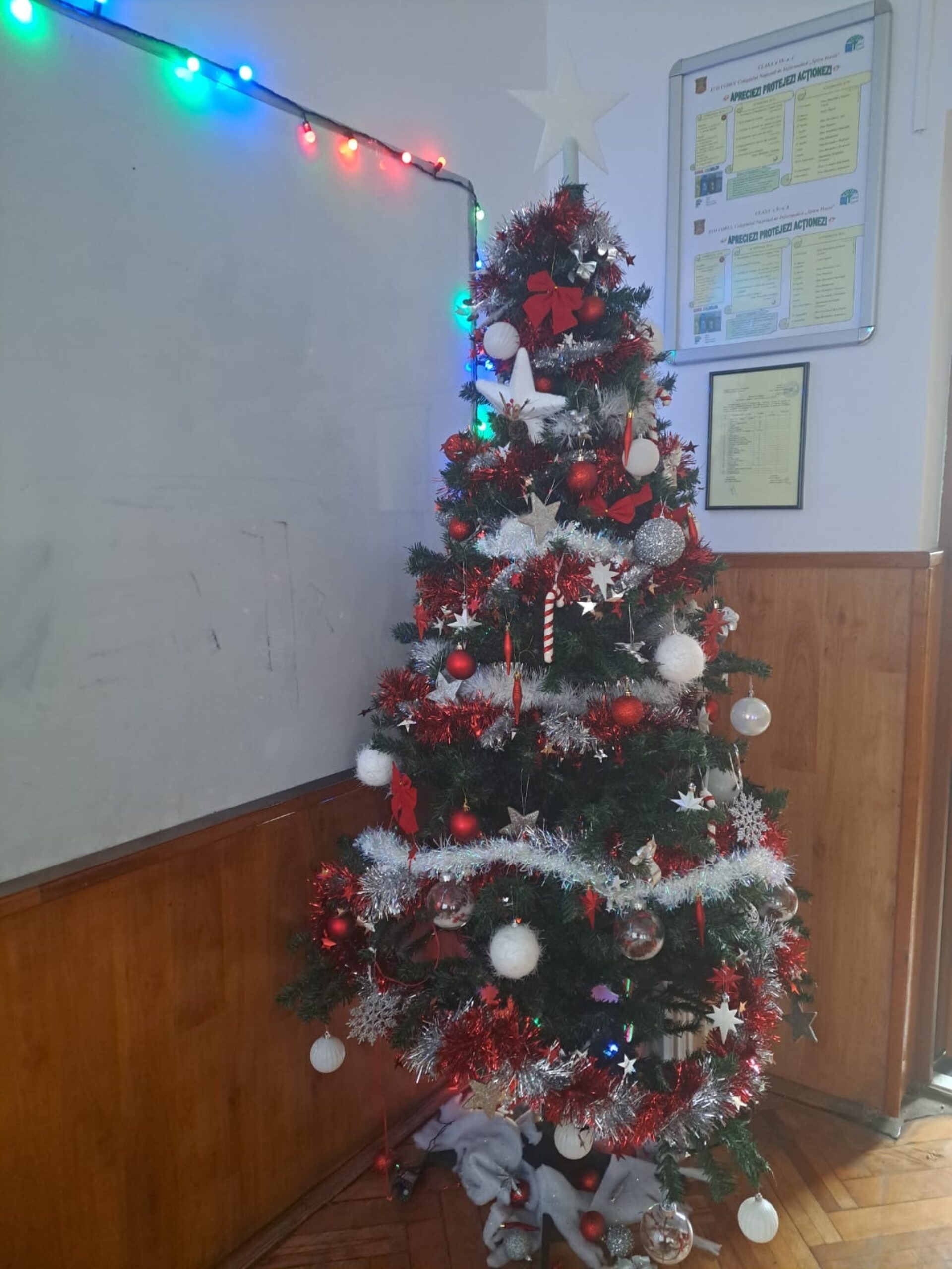 Provocarea a fost simplă: fiecare clasă să împodobească un brad în sala de curs, să își pună în valoare creativitatea, originalitatea și spiritul de echipă și să aducă atmosfera de sărbătoare în clasele liceului.