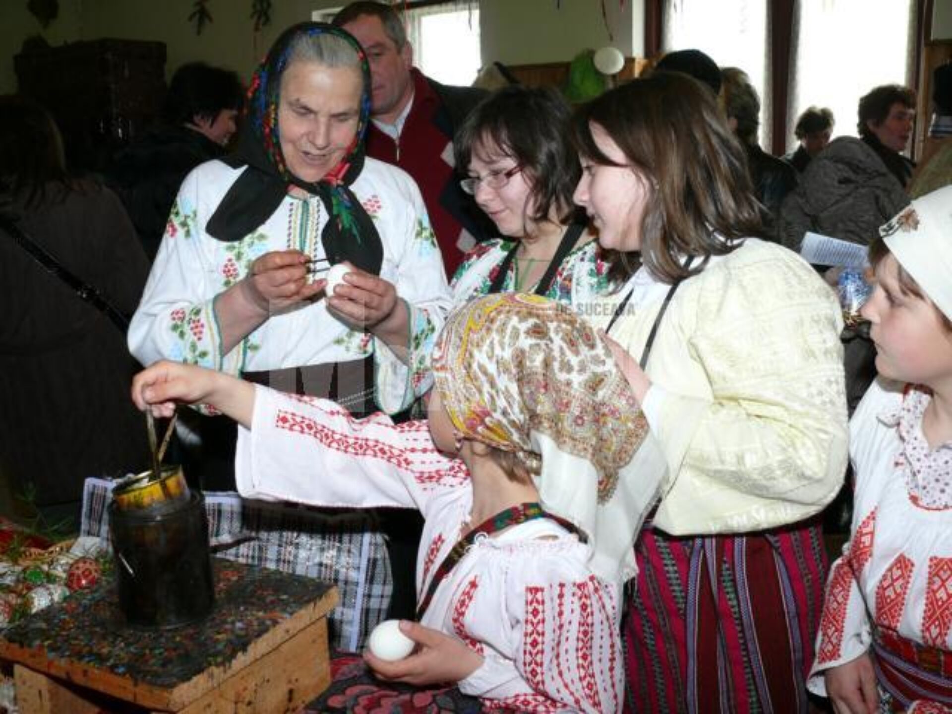 Căminul Cultural din Paltinu, comuna Vatra Moldoviței, a găzduit duminică cea de-a treia ediție a Concursului „Oul închistrit”. Îmbrăcați în straie populare, înarmați cu cele necesare încondeierii ouălor, peste 150 de copii din județele Suceava, Botoșani și Neamț, s-au întrecut la Paltinu în arta încondeierii ouălor. Au participat 27 de echipaje, formate din copii cu vârste cuprinse între 5 și 12 ani. Mulți dintre ei au venit pentru prima dată la acest concurs, dar asta nu înseamnă că nu știau să încondeieze, iar alții abia au învățat. Timp de aproape două ore, copiii au lucrat la un ou demonstrativ, specific zonei pe care o reprezentau. Au fost prezenți și copii din regiunea Cernăuți – Ucraina, care s-au arătat interesați de felul în care lucrează copiii români, regăsind elemente comune stilului de lucru, dat fiind faptul că la Paltinu, 95 la sută din populație este de etnie huțulă.