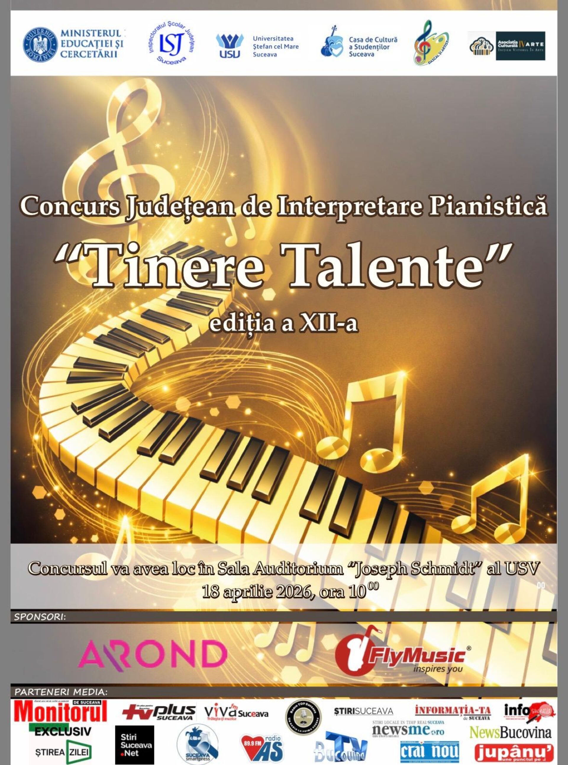 Concursul tinerilor artiști se va desfășura pe 18 aprilie, în Auditoriul ”Joseph Schmidt” al Universității „Ștefan cel Mare” Suceava, iar înscrierile sunt deschise.