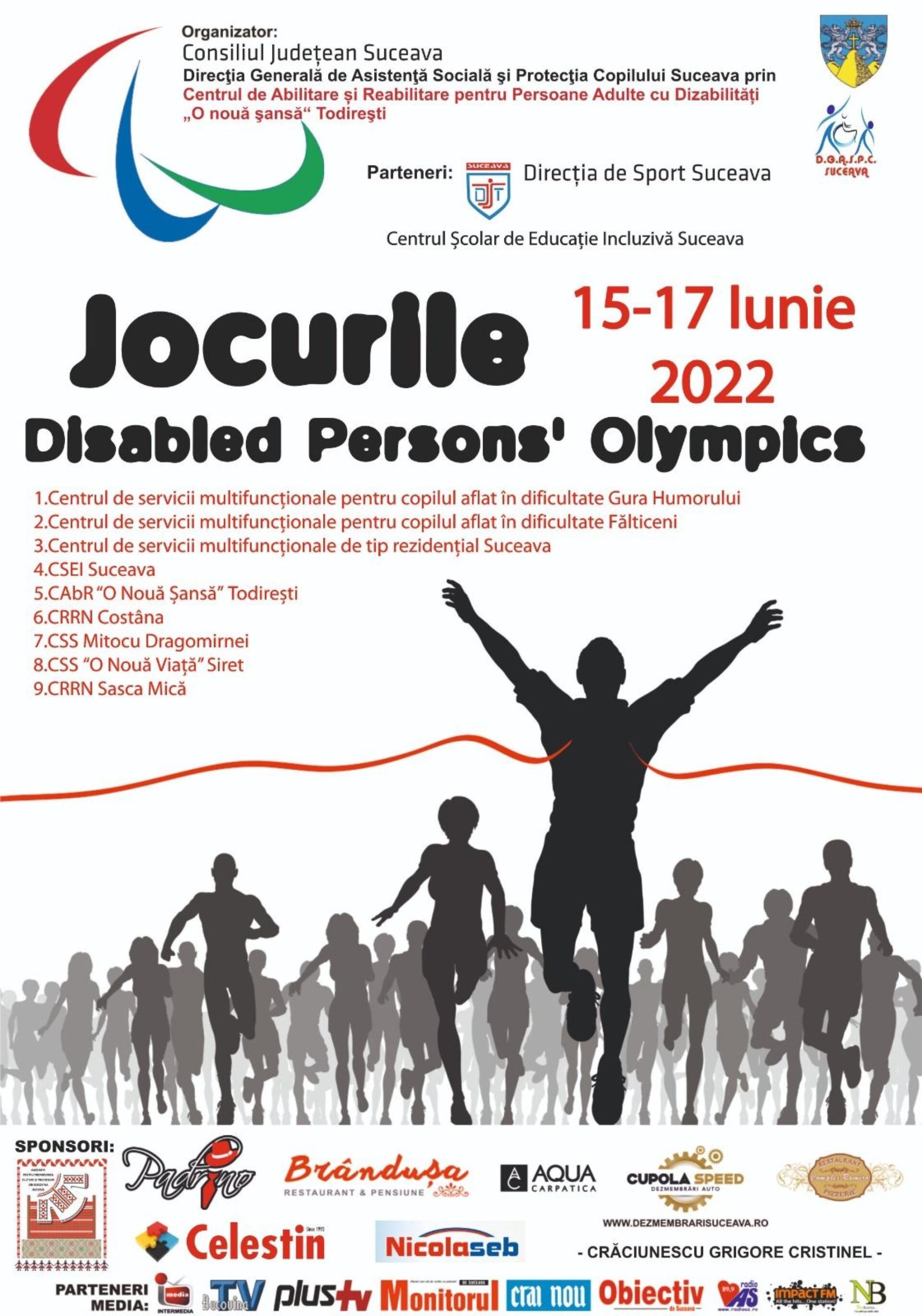 Centrul de Abilitare și Reabilitare pentru Persoane Adulte cu Dizabilități Todirești, din cadrul Direcției Generale de Asistență Socială și Protecția Copilului (DGASPC) Suceava, organizează concursuri sportive pentru persoanele cu dizabilități, copii și adulți din cadrul sistemului de protecție, în zilele de 15, 16 și 17 iunie 2022. În cele trei zile, începând cu ora 10.00, la Centrul Școlar de Educație Incluzivă Suceava, partenerul DGASPC Suceava din fiecare an, se vor desfășura concursuri sportive pe următoarele categorii: tenis, baschet și fotbal. S-au alăturat acestei inițiative și Direcția de Sport Suceava, care este alături de organizatori, precum și sponsori importanți.