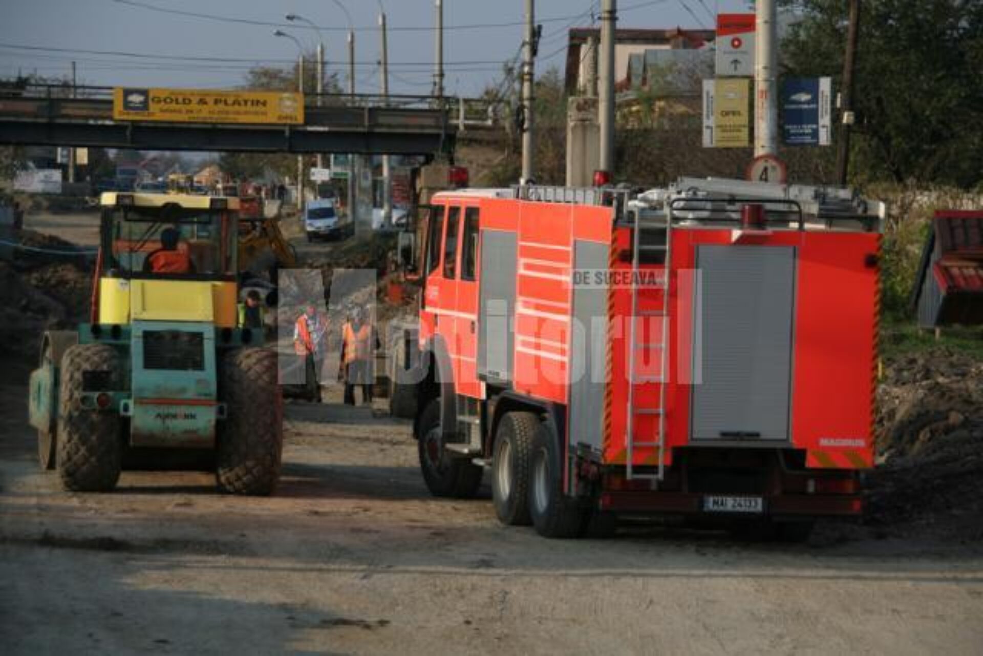 La Inspectoratul pentru Situații de Urgență Suceava alarma s-a dat în jurul orei 16.30, pompierii de la Detașamentul Suceava ajunși la fața locului izolând zona până ce alimentarea cu gaz a fost întreruptă. Concluzia pompierilor a fost clară. Șoferul excavatorului care lucra la câțiva metri de „pasarelă”, la marginea drumului, pe partea dreaptă, spre Șcheia, nu a fost atent și a lovit conducta în timp ce săpa.