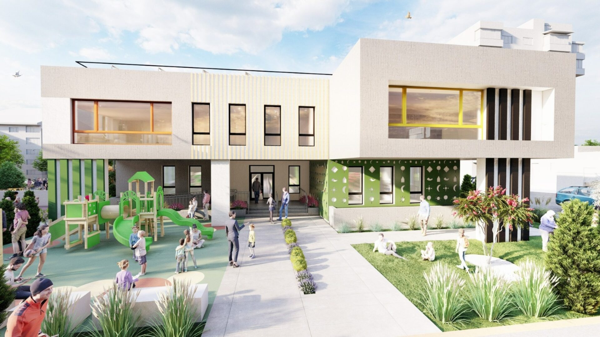 Implementarea acestui proiect constă în construirea unui corp de clădire care să îndeplinească standardele NZEB (Nearly Zero Energy Building) și care va avea regim de înălțime D+P+1E, 8 grupe de copii, un număr maxim de 20 de preșcolari pe grupă, sală de mese, săli de activități comune, locuri de joacă, spații verzi.