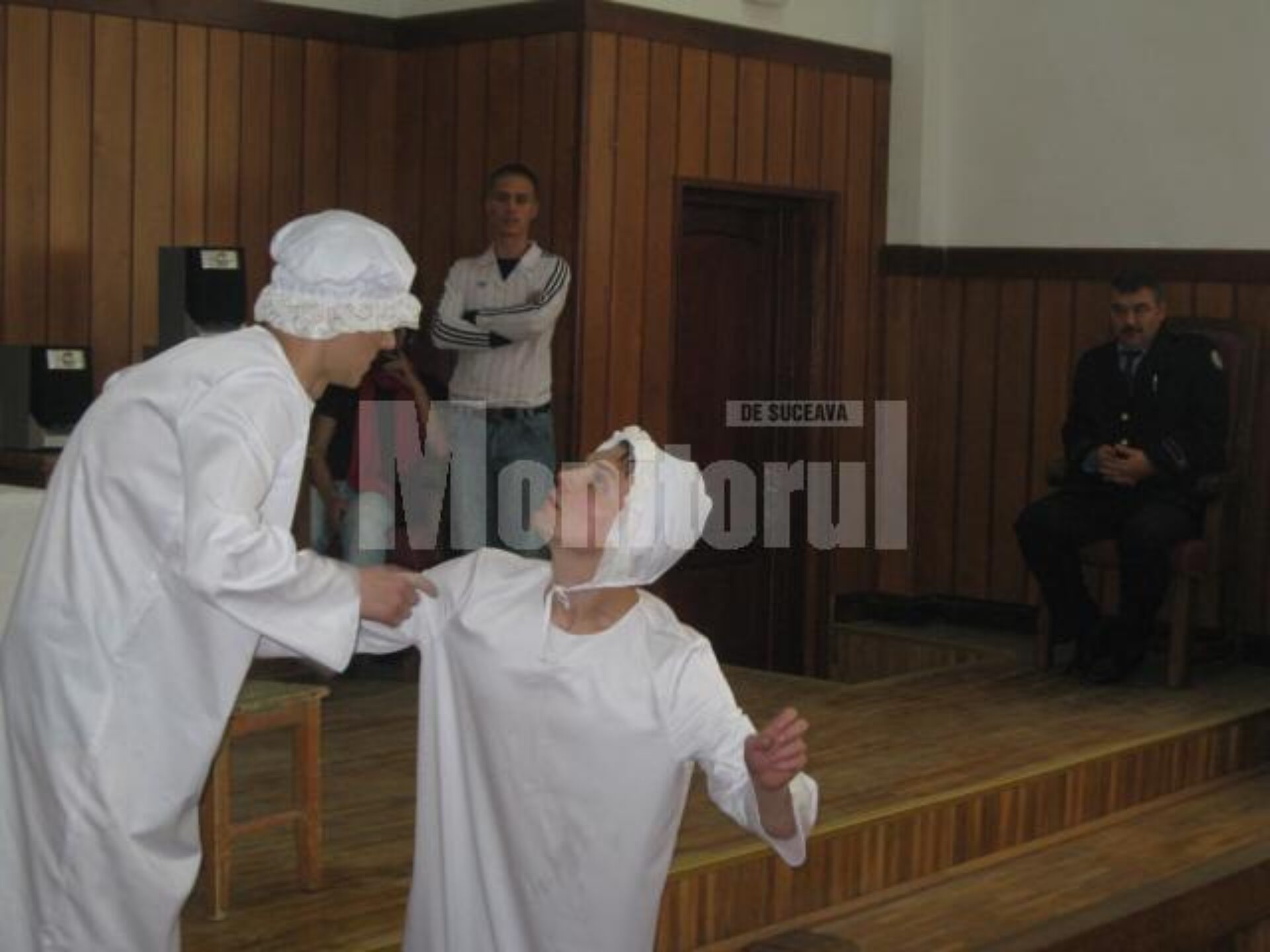 Câțiva deținuți din Penitenciarul Botoșani „au recidivat” cu o nouă faptă la Suceava. După ce anul trecut oamenii condamnați la ani grei de închisoare au jucat o piesă de Cehov, ieri a fost rândul dramaturgului Ion Luca Caragiale să ajungă în sala de judecată a Palatului de Justiție din Suceava. Trei deținuți, îndrumați de un actor al Teatrului „Mihai Eminescu” din Botoșani, au pus în scenă piesa „Conu Leonida față cu reacțiunea”, printre spectatori numărându-se și gardienii aduși să-i păzească pe actorii de conjunctură. Scena neconvențională pe care au urcat ieri actorii cu haine în dungi a găzduit deja al doilea spectacol de teatru. Dintre deținuții care au evoluat în „Ursul” lui Cehov a mai rămas încarcerat doar Cătălin Ifrim, așa încât regizorul Mihai Donțu, actor al Teatrului Național „Mihai Eminescu” din Botoșani, a fost nevoit să caute alți „actori”.