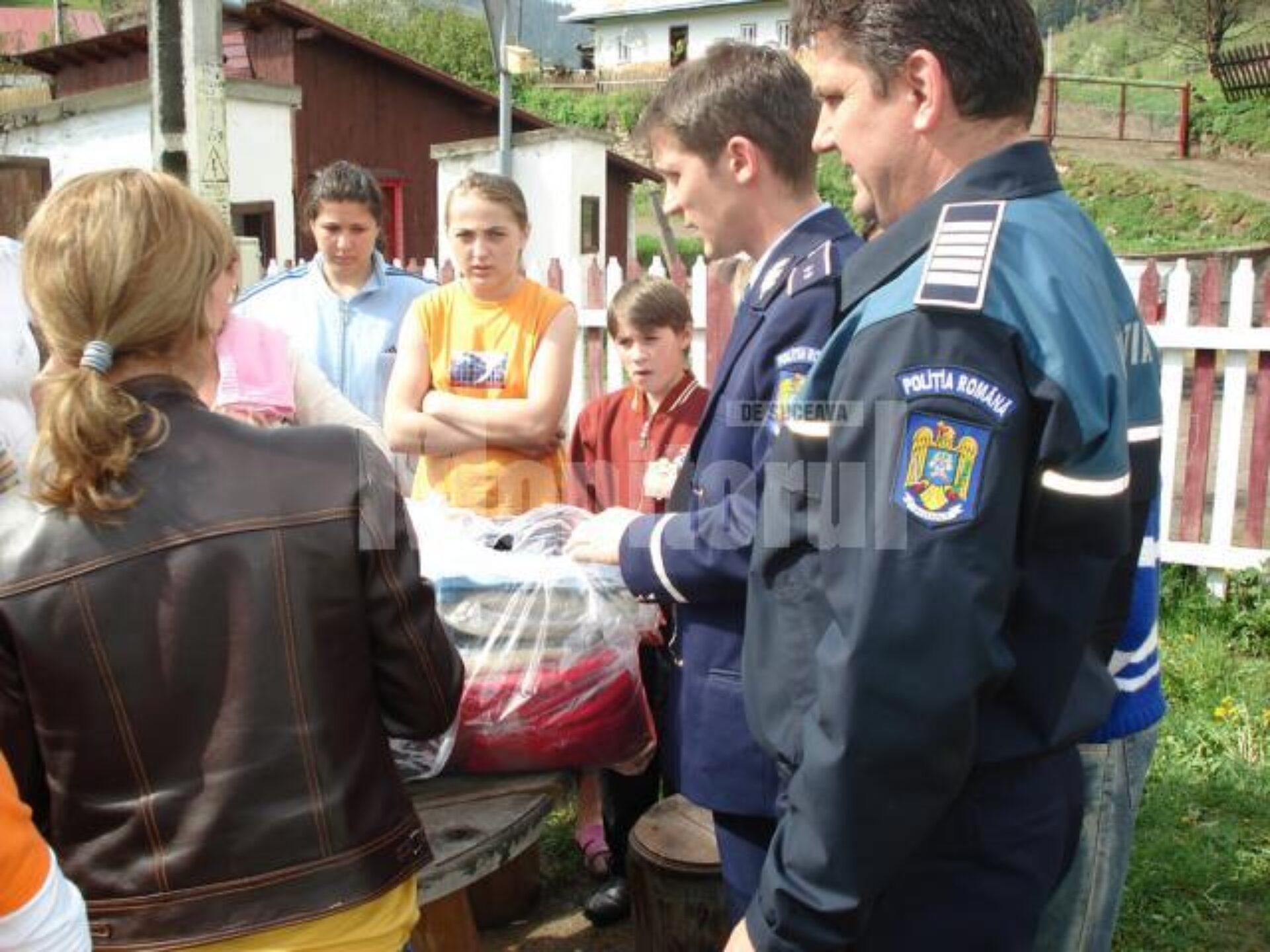 La Fundu Moldovei, au ajuns, marți și miercuri, reprezentanți ai Inspectoratului de Poliție Județean Suceava, care le-au donat celor 25 de copii treninguri, tricouri și încălțăminte, fiind vorba de o donație de 2.000 de lei din partea polițiștilor din județ.