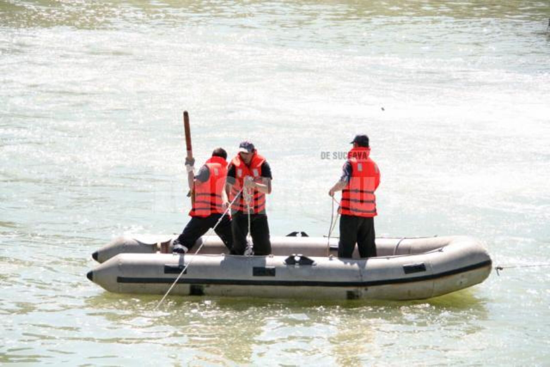 Pompieri de la Detașamentul Suceava al Inspectoratului pentru Situații de Urgență au început operațiuni de căutare cu o barcă pneumatică și căngi.