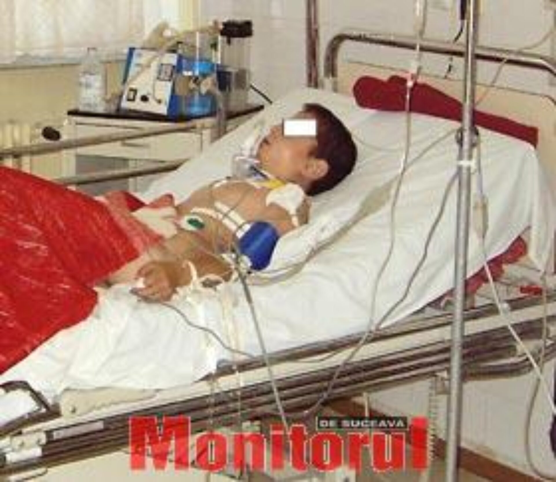 Șeful Secției Anestezie și Terapie Intensivă, doctor Dorin Stănescu, ne-a declarat că băiatul este în stare critică și că sunt șanse puține să scape cu viață. Mușcăturile adânci i-au provocat copilului leziuni laringo – traheale complexe, acesta prezentând insuficiență respiratorie, fapt pentru care i s-a făcut traheostomie (gaură în trahee pentru ca pacientul să poată respira). Conform sursei citate, copilul are fracționată pleura și este posibil ca atunci când a avut hemoragie, o parte din sânge să fi ajuns în plămâni. Dorin Stănescu a spus că având în vedere leziunile multiple, pot apărea tot felul de complicații precum infecții și hemoragii și de aceea s-a decis transferarea pacientului la o clinică ieșeană, unde să poată fi supus unor investigații complexe. Copilul a plecat spre Iași cu o ambulanță, în jurul orelor 13:00.