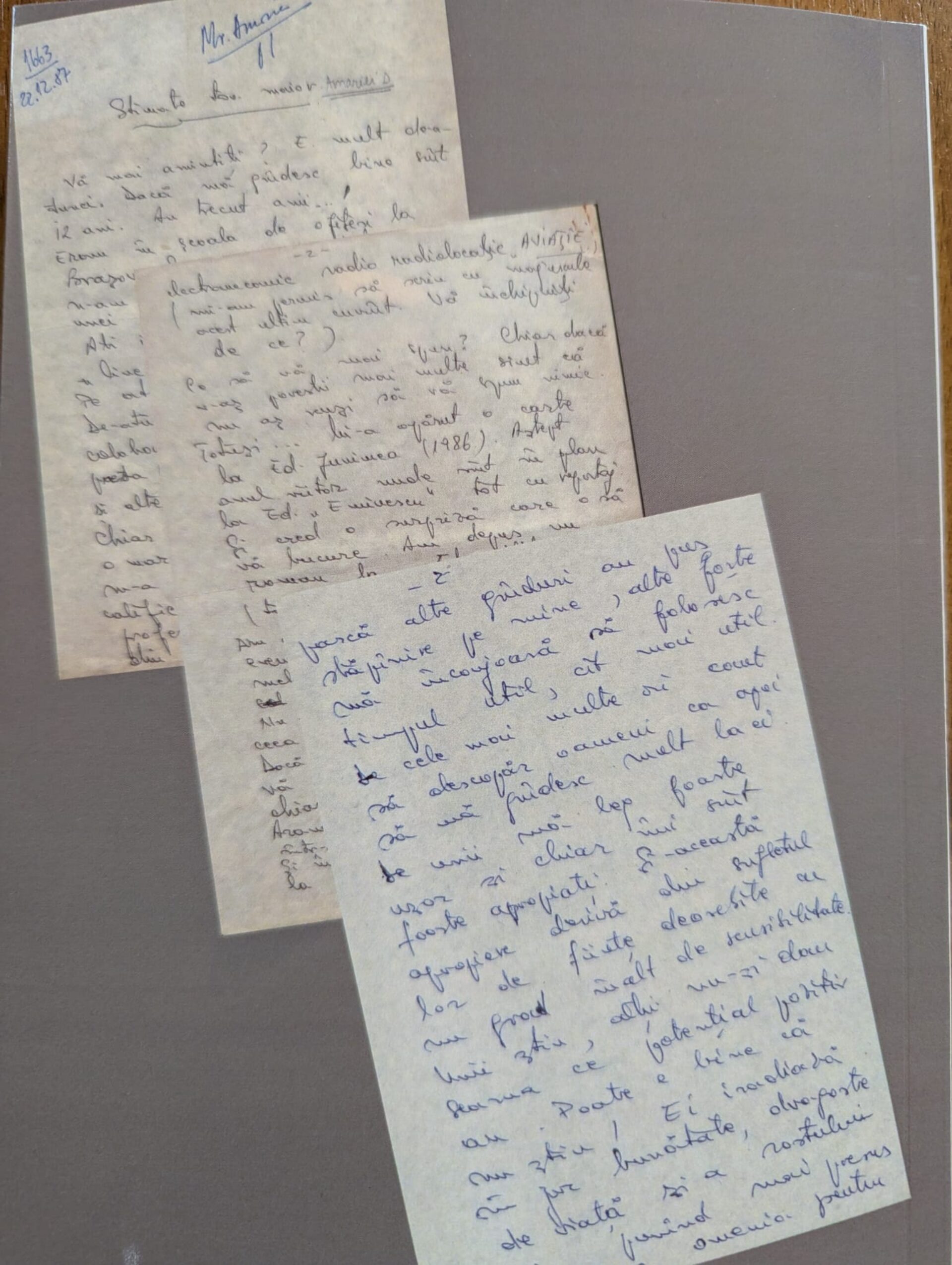 Tot la începutul cărții, din „Cuvântul Destinatarului”, semnat de Mircea Motrici, reținem: „În ani, am primit multe scrisori. Unele dintre ele depășesc adresarea personală. Cu fiecare rând citit, simțeam că întregul mesaj aparține unui timp fără hotar, așa cum și trăirile n-au margini… Iată de ce am considerat firesc să le adun în filele ce urmează, pentru că definirea unor gesturi are nevoie să brăzdeze câteva generații. Puterea cuvintelor s-ar putea să se piardă în negura vremii, la fel de bine cum ar putea să așeze o lumină peste anumiți ani. Ani în care unii oamenii au trăit, au iubit, au sperat. Cu speranță așez și eu, într-o ordine întâmplătoare, scrisorile și filele primite sau înmânate”.
