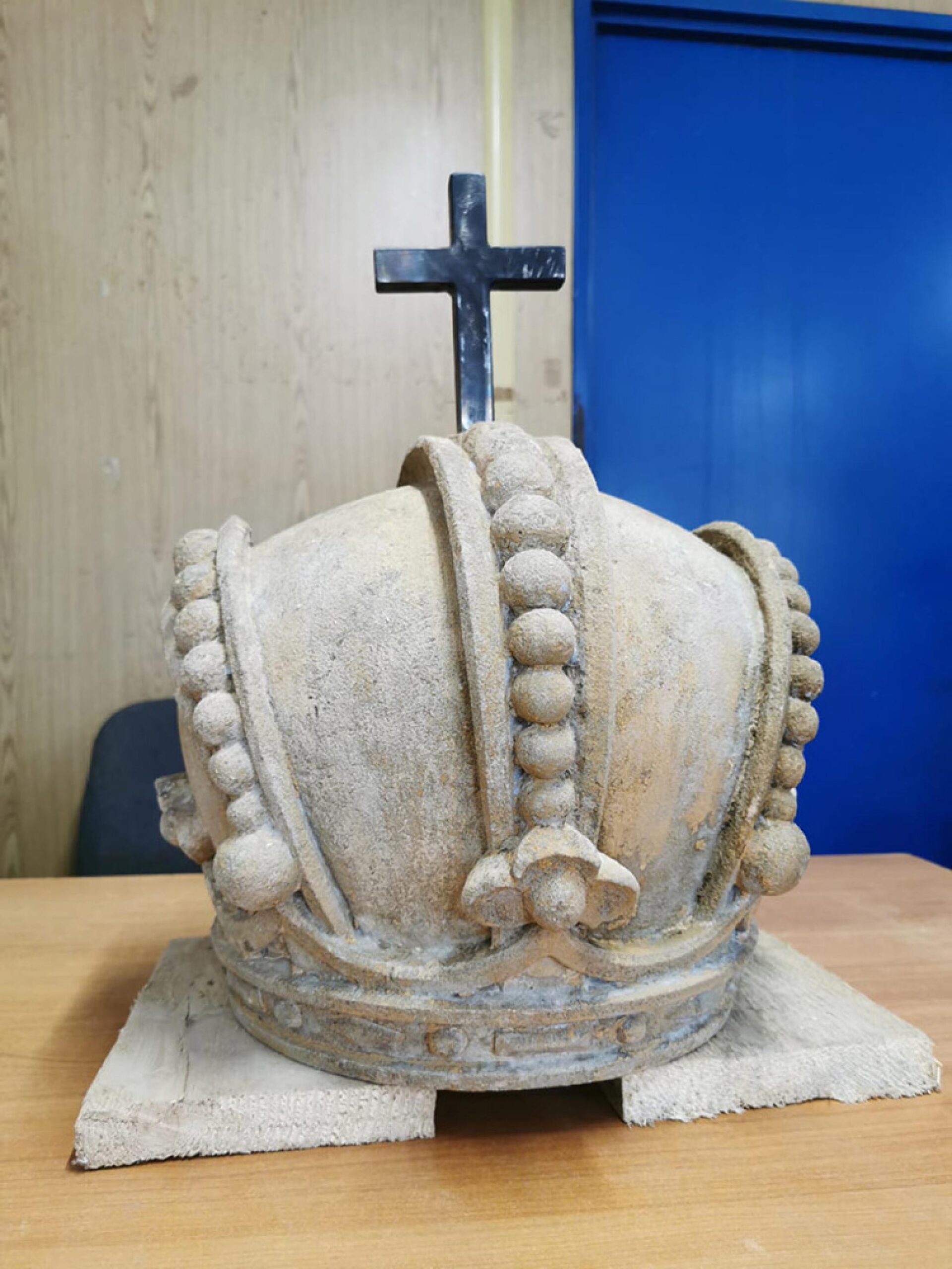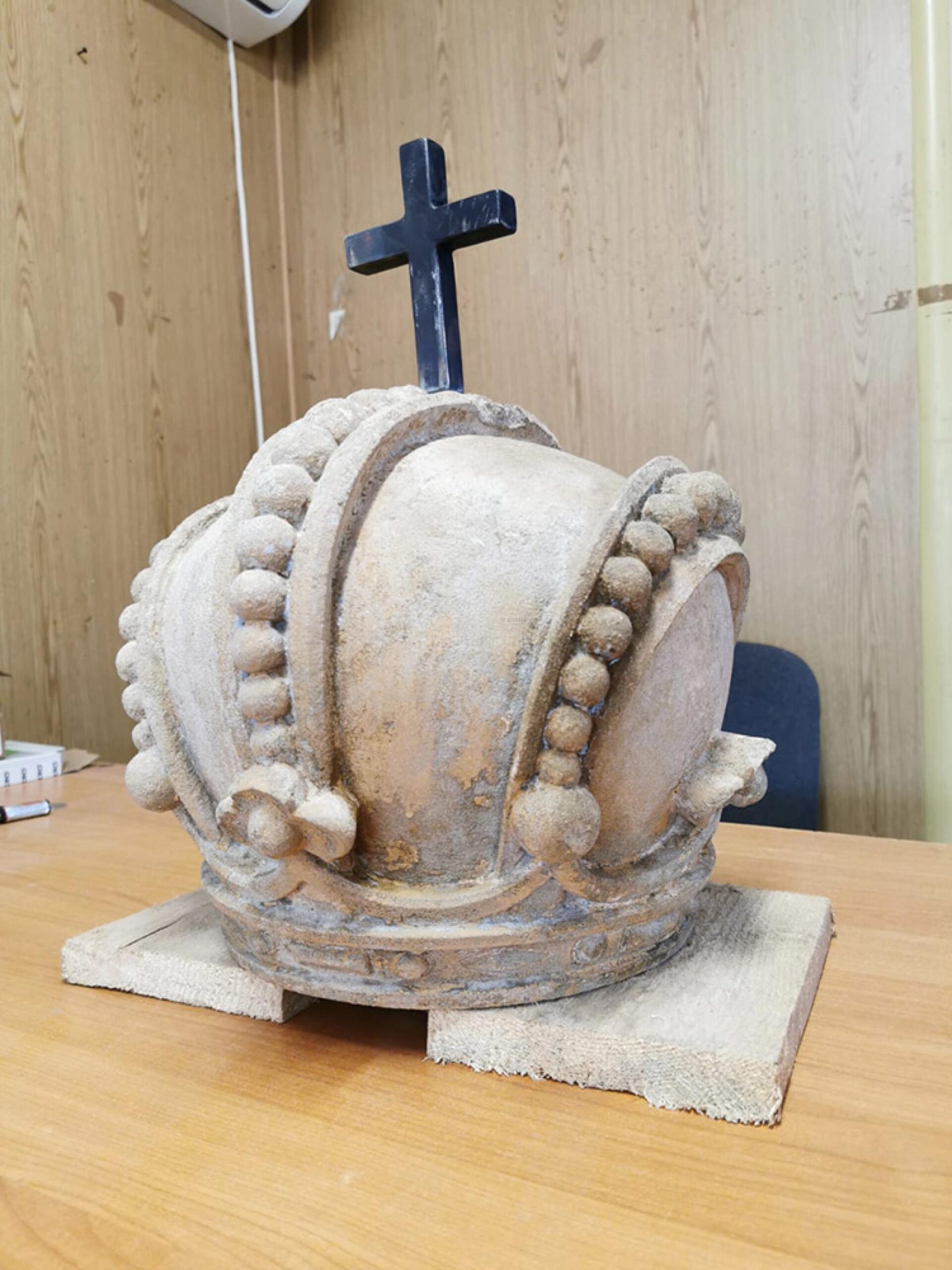 ”Coroana imperială care a fost amplasată la început pe fațada superioară a clădirii a fost descoperită aproape intactă. Prezenta unele probleme, dar colegii mei au realizat lucrări de curățare, consolidare și hidrofobizare și urmează să o amplaseze la locul ei, adică în vârful stemei. Este realizată din piatră sculptată cu mai multe detalii și amintește de faptul că această clădire a fost ridicată în perioada în care Câmpulung Moldovenesc se afla sub administrare austriacă”, a mai menționat Diana Țugui.
