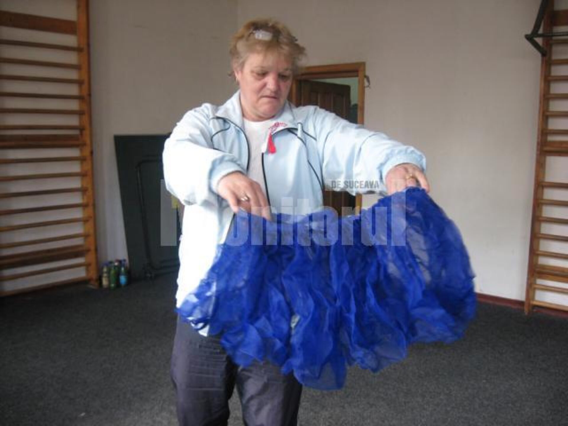 „Nu aveam costume, nu a aveam bani cu ce să le cumpărăm, dar pentru că în inventarul școlii erau costumele vechi de la defilările în cinstea lui Ceaușescu, și mai era și material pentru steaguri, am zis să ne folosim de ce avem și am făcut din el fuste și eșarfe pentru fete”, a spus coordonatorul trupei de dans, Lucia Purice.