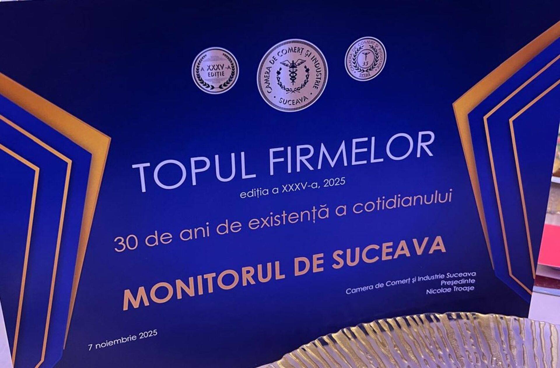 Cotidianul Monitorul de Suceava a primit, vineri seara, „Trofeul special” la Gala Excelenței în Afaceri – Topul Firmelor 2024. Premiul a fost acordat de organizatorul evenimentului, Camera de Comerț și Industrie Suceava, pentru a marca nu mai puțin de 30 de ani de existență neîntreruptă a Monitorului de Suceava pe piața media din România. Premiul a fost ridicat de redactorul-șef Tiberiu Avram, care a mulțumit în primul rând echipei Monitorul de Suceava, precum și tuturor colaboratorilor care au fost și vor fi alături de unul dintre ziarele de tradiție din județ.