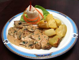 – se stinge cu vin alb și se adaugă smântâna dulce