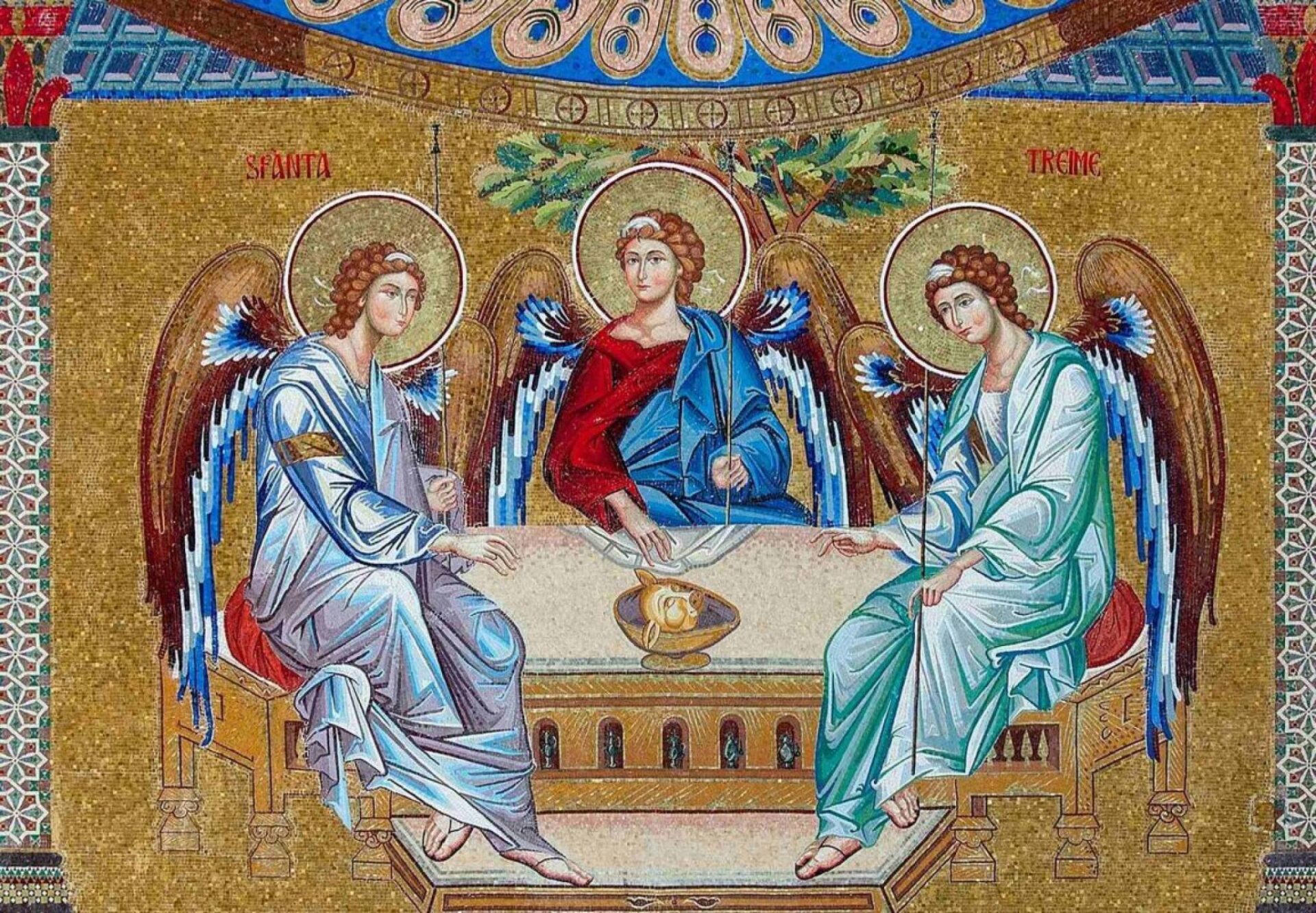 În Vechiul Testament, Dumnezeu S-a descoperit oamenilor ca Treime de Persoane, însă într-un mod nedeplin, neclar și indirect, deoarece lumea încă nu era pregătită să primească această mare Taină a dumnezeirii întreit ipostaziate. Sunt deja mult cunoscute și uzitate în mediile teologice textele scripturistice veterotestamentare precum: „Să facem om după chipul și asemănarea noastră” (Facere 1, 26); „Sfânt, Sfânt, Sfânt, Domnul Savaot” (Isaia 6, 3) sau apariția celor trei Oameni la stejarul Mamvri, cărora Patriarhul Avraam Le-a adus închinare ca unei singure Persoane (Facere 18, 1-2).