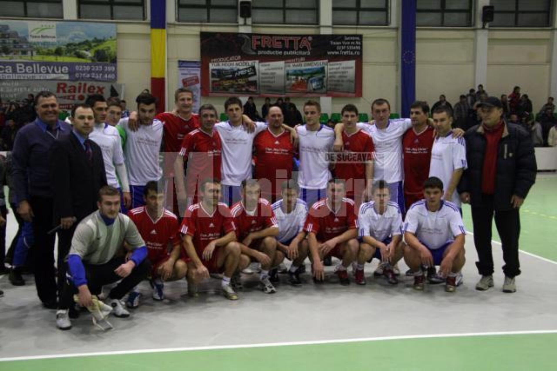 În cadrul manifestărilor de la ediția a IV-a a Cupei Moș Crăciun, miercuri seară s-a disputat un interesant meci demonstrativ, care a adunat laolaltă pe parchetul sălii de la Liceul cu Program Sportiv mai multe foste glorii ale fotbalului sucevean, jucători în activitate, dar și fotbaliști tineri, aflați deocamdată la stadiul de speranțe. Cei care s-au aflat în tribune nu au avut ce regreta și au suspinat cu nostalgie admirând detenta lui Dorin Goian, driblingurile lui Mihai Roman, viteza lui Daniel Bălan sau determinarea lui Mihai Guriță. La finalul unui meci plin de faze spectaculoase, „Albii”, în formula Vlad Hânțescu (Academia „Gheorghe Hagi”) – Mihai Roman, Marius Onciu, Laurențiu Berezoschi, Paul Bosancu, Tudor Homneac, Vlad Stănescu, Florin Plămadă, Daniel Păiuș (Academia „Gheorghe Hagi”), Ionuț Nechitoaia (Sporting Suceava), Alex Buziuc (Sporting Suceava) au dispus cu scorul de 9-7 de mult mai titrata echipă „Roșie”, care i-a avut în componență pe Andrei Rohețki, Dorin Goian, Daniel Bălan, Mihai Guriță, Mugur Bolohan, Gică Păiuș, Florin Cristescu, Ovidiu Ciobanu, Ovidiu Murariu sau Adrian Beldiman. Unul din momentele de atracție al partidei a fost duelul dintre fosta mare glorie a fotbalului sucevean, Gică Păiuș, și fiul său Daniel, component de bază al lotului național de juniori al României. Indicațiile tactice către jucători au fost asigurate de pe margine de profesorii Silviu Stănescu, Ioan Radu și Ion Buzoianu.