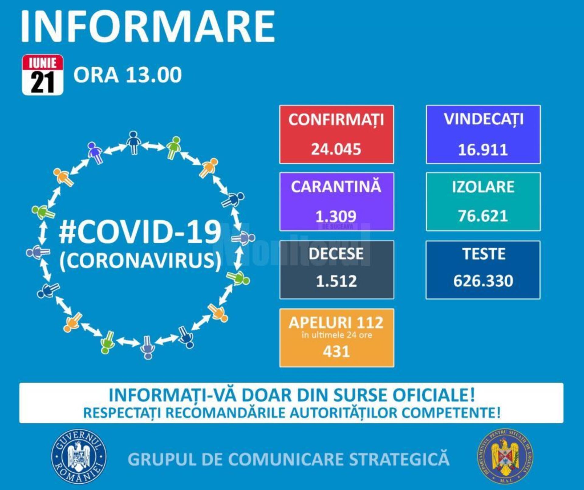 Astfel, conform datelor prezentate de Prefectura Suceava, în data de 21 iunie, se aflau în autoizolare la domiciliu 4222 de persoane iar în carantină instituționalizată 5 persoane.