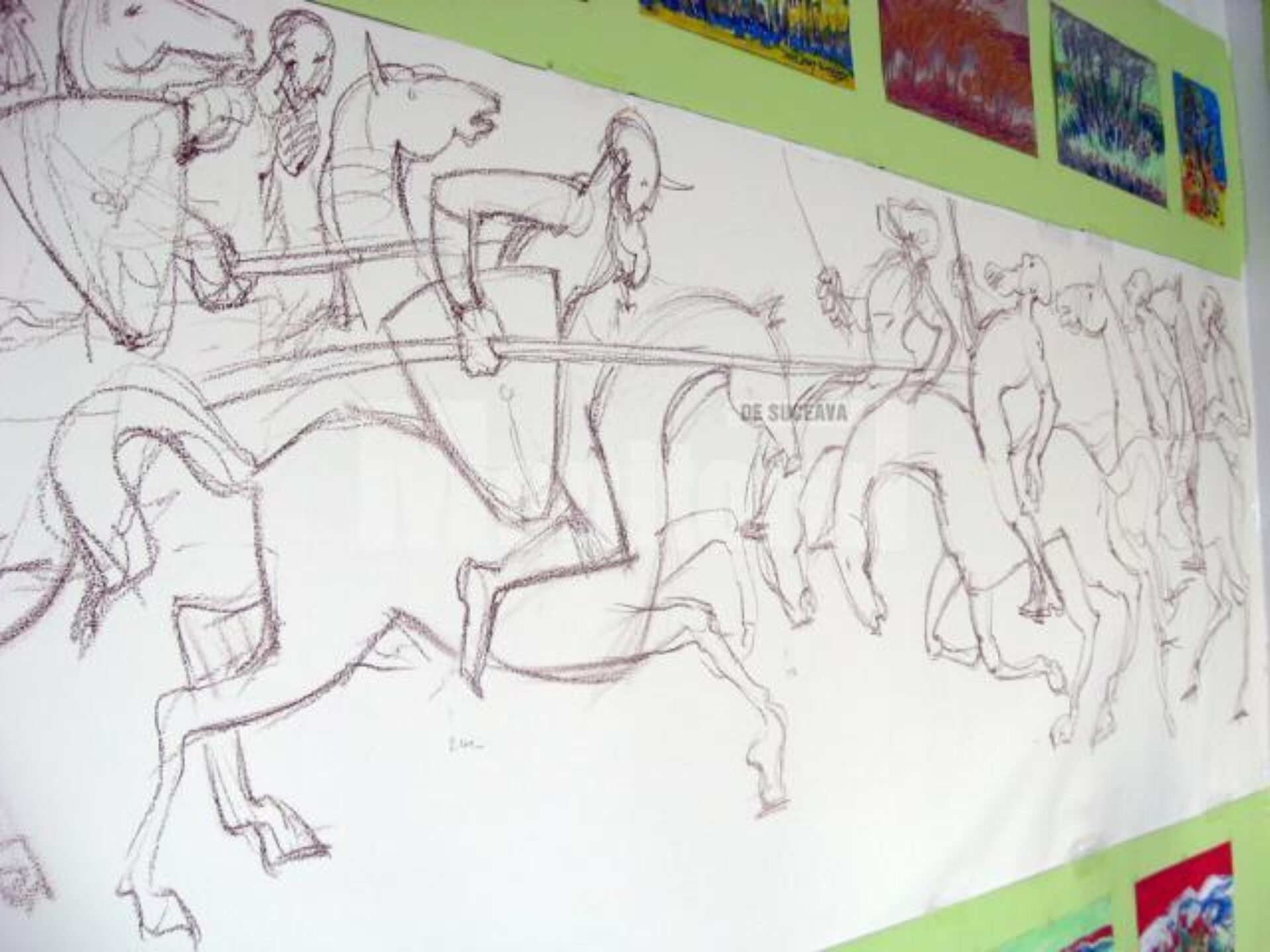 Constantin Ungureanu BOX, care, sub sigla Partidului Verde, cu deviza „Verde peste tot!”, a început de săptămâna trecută să lucreze la această compoziție de mari dimensiuni, prin care dorește să atragă atenția sucevenilor asupra confruntării politice din campania electorală, transpune lupta partidelor din contemporaneitate în perioada medievală, în vremea desfășurării cruciadelor.