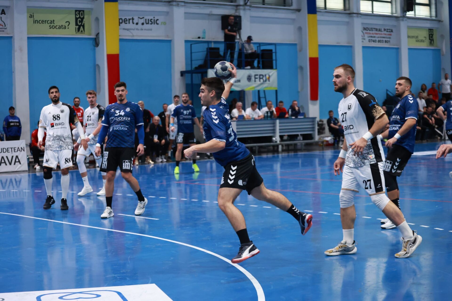 CSU Suceava a câștigat meciul de pe teren cu Universitatea Cluj, disputat sâmbătă seară, în sala „Dumitru Bernicu”, din cadrul etapei a V-a a Ligii Naționale de handbal masculin. Echipa antrenată de Bogdan Șoldănescu s-a impus fără prea mari emoții, cu 38-34, după ce la pauză conducea cu 20-16. A fost un joc spectaculos, alert, un bun prilej pentru foarte tinerii Teodor Ilucă, autor a 8 goluri, și Emanuel Șerban, cu 5 goluri marcate, de a ieși la rampă.