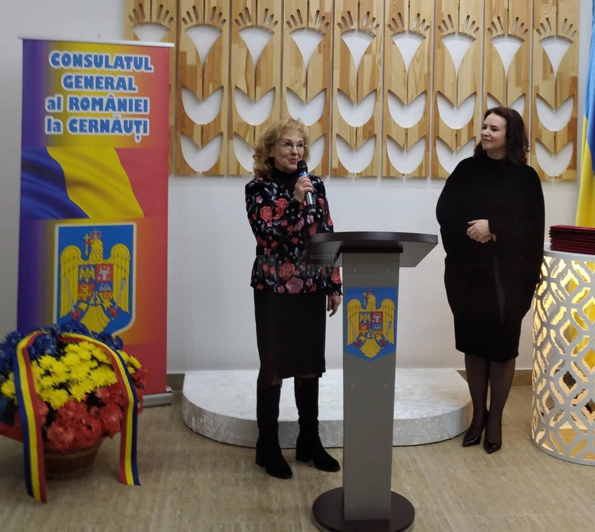 Dramatismul zilelor de război și-a lăsat amprenta în derularea festivității ce a urmat la Palatul Național, care a început cu minutul de reculegere. O nuanță de tristețe s-a revărsat și din vocea Carolinei Jitaru, jurnalista și cântăreața în postură de moderatoare. Alături de echipa sa – consulii de carieră Laurențiul Ciocan, Nicolae Dan Constantin, referentul principal Florin Stan, gazda evenimentului, Excelența sa Irina Loredana Stănculescu, ne-a îmbrățișat cu căldura zâmbetului și cuvintelor de dragoste pentru comunitatea noastră și respect pentru poporul ucrainean. Cuvinte de gratitudine pentru România și poporul român i-au fost adresate în partea Administrației militare regionale, în persoana viceguvernatorului Aliona Atamaniuk, Consiliului regional – adjunctul președintelui Myhailo Pavlik, primăriei or. Cernăuți – secretarul consiliului orășenesc Serhii Dobrjanski. Îndeosebi, s-au întipărit mulțumirile reprezentantului conducerii orașului, care a menționat că România acordă nu o mână, ci două mâini de ajutor. Cu propuneri de a dezvolta și consolida acest ajutor prin derulare de proiecte transfrontaliere comune a venit Cezar Grozavu, șeful Biroului regional pentru cooperare transfrontalieră Suceava. Consiliera dr. Sanda-Maria Ardeleanu a convenit deja cu șefa Catedrei de Filologie Română și Clasică, Cristina Paladean, în privința colaborării academice și ajutorului necesar studenților români de la universitatea cernăuțeană. O surpriză frumoasă i-a făcut d-nei Irina Loredana Stănculescu, pr. Ioan Ițco de la Câmpulung Moldovenesc, inițiatorul proiectului de popularizare a personalităților cu renume ”Din Boian la Vatra Dornei”. De asemenea, cu un cadou frumos s-a prezentat criticul literar Ștefan Hostiuc, care a consacrat Consulatului General un număr al revistei ”Mesager Bucovinean”.