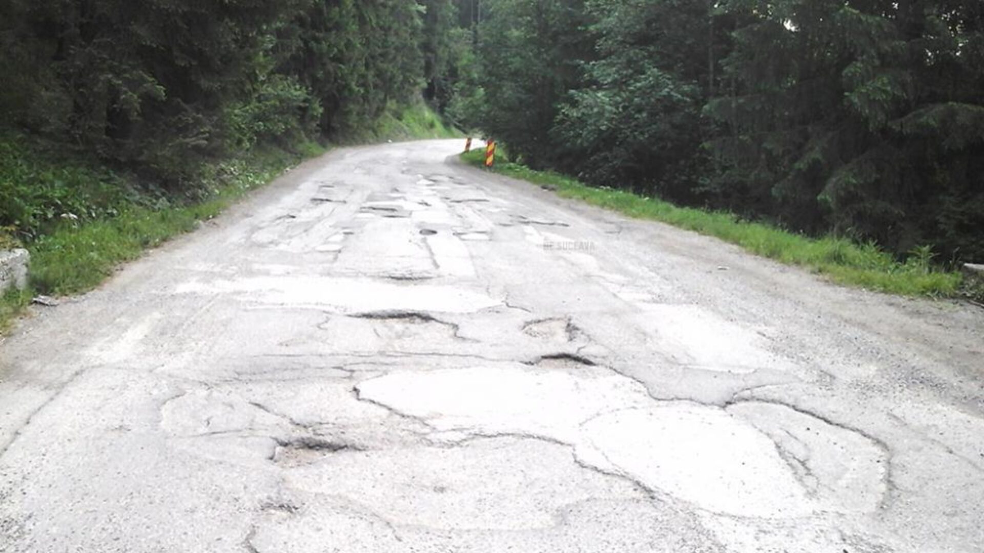 Realitatea la zi din teren a fost surprinsă cât se poate de clar de un sucevean care circulă adesea pe acest drum și a realizat mai multe fotografii relevante.