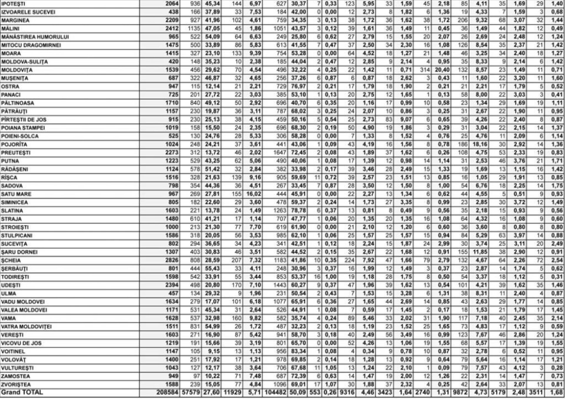 PSD a câștigat alegerile din județul Suceava în cele mai multe dintre localități, reușind să se impună atât în toate orașele și municipiile, cât și în majoritatea comunelor. În cursul zilei de ieri au fost prezentate rezultatele alegerilor din județul Suceava pentru fiecare localitate, din acestea reieșind că PSD a reușit să câștige în unele comune cu scoruri record. PSD Suceava a avut cel mai bun rezultat în comuna Voitinel, acolo unde a obținut 83,34% din voturi la Senat și 82,31% la Camera Deputaților.