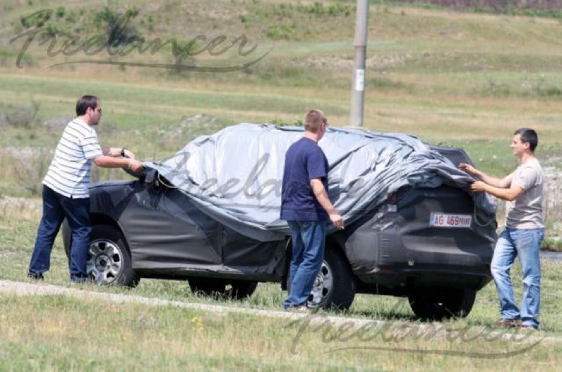 Grație prietenilor noștri de la Freelancer.ro suntem în măsură să vă prezentăm primele imagini cu Dacia SUV, surprinse într-un moment de respiro al echipei aflate pe Transfăgărășan. Camuflajul acoperă complet mașina, astfel că o analiză a acesteia este practic imposibilă. Prelata nu poate ascunde însă trăsăturile acestui SUV care prezintă o gardă la sol ridicată, dimensiuni compacte, bosaje proeminente în dreptul roților, și o alură robustă.
