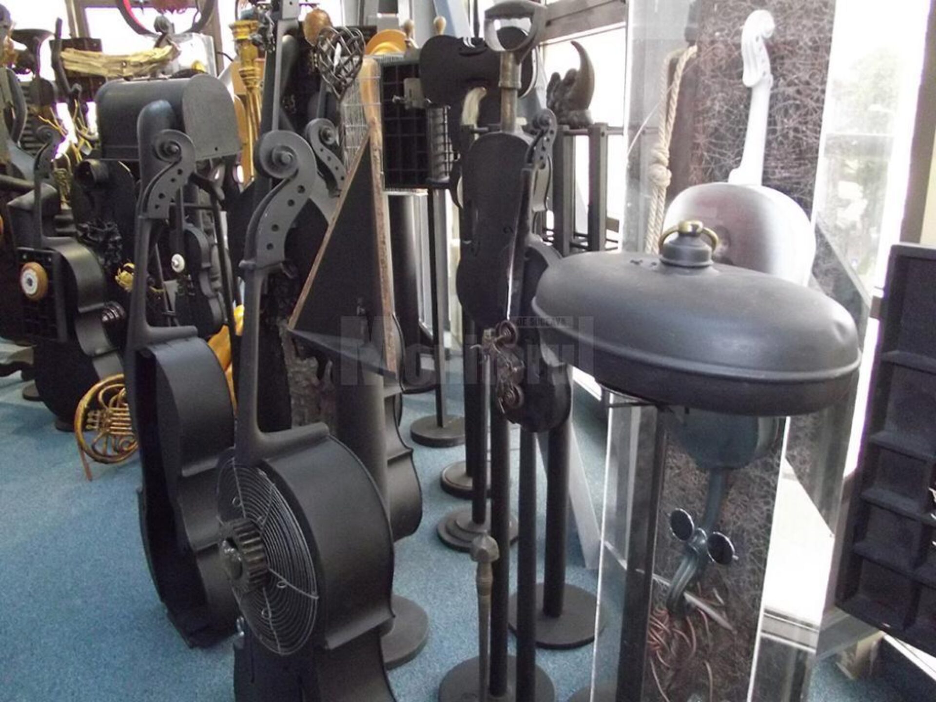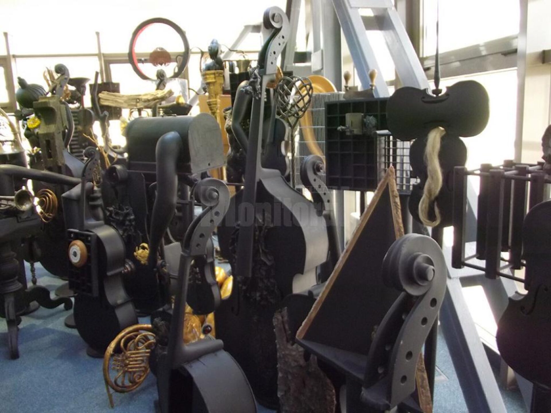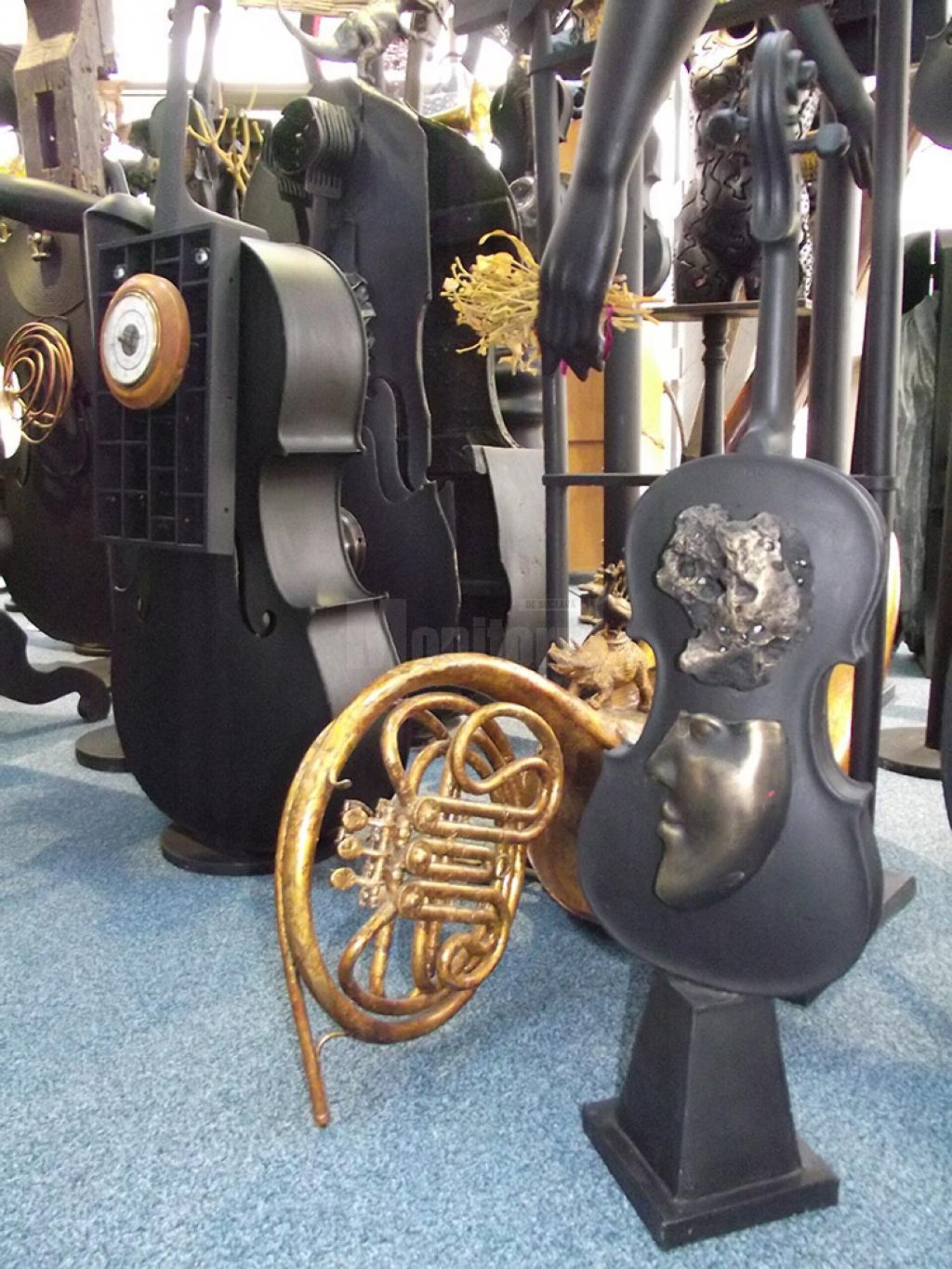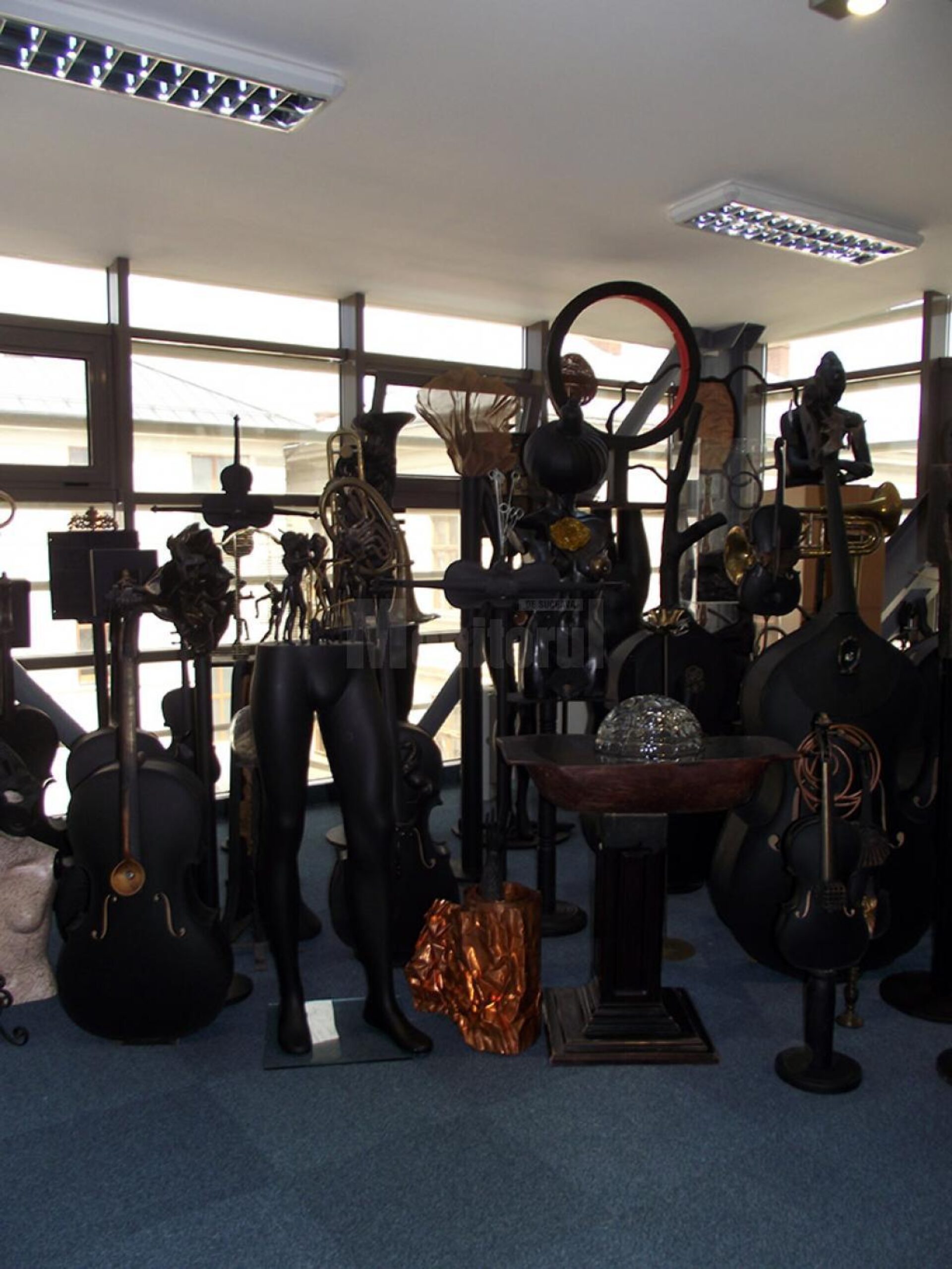 Circumscrisă manifestărilor din programul celei de-a IV-a ediții a Zilelor „Matei Vișniec”, expoziția, cu care s-a inaugurat spațiul dedicat expozițiilor temporare din incinta teatrului sucevean, etalează un grupaj de lucrări de pictură și o instalație alcătuită din diverse obiecte (cu precădere instrumente muzicale, alămuri și cutii de rezonanță de la instrumente cu coarde, dar și piese utilitare din gospodăria tradițională, sau fragmente de manechine, mașini de scris etc.) dispuse într-un aranjament aleatoriu.