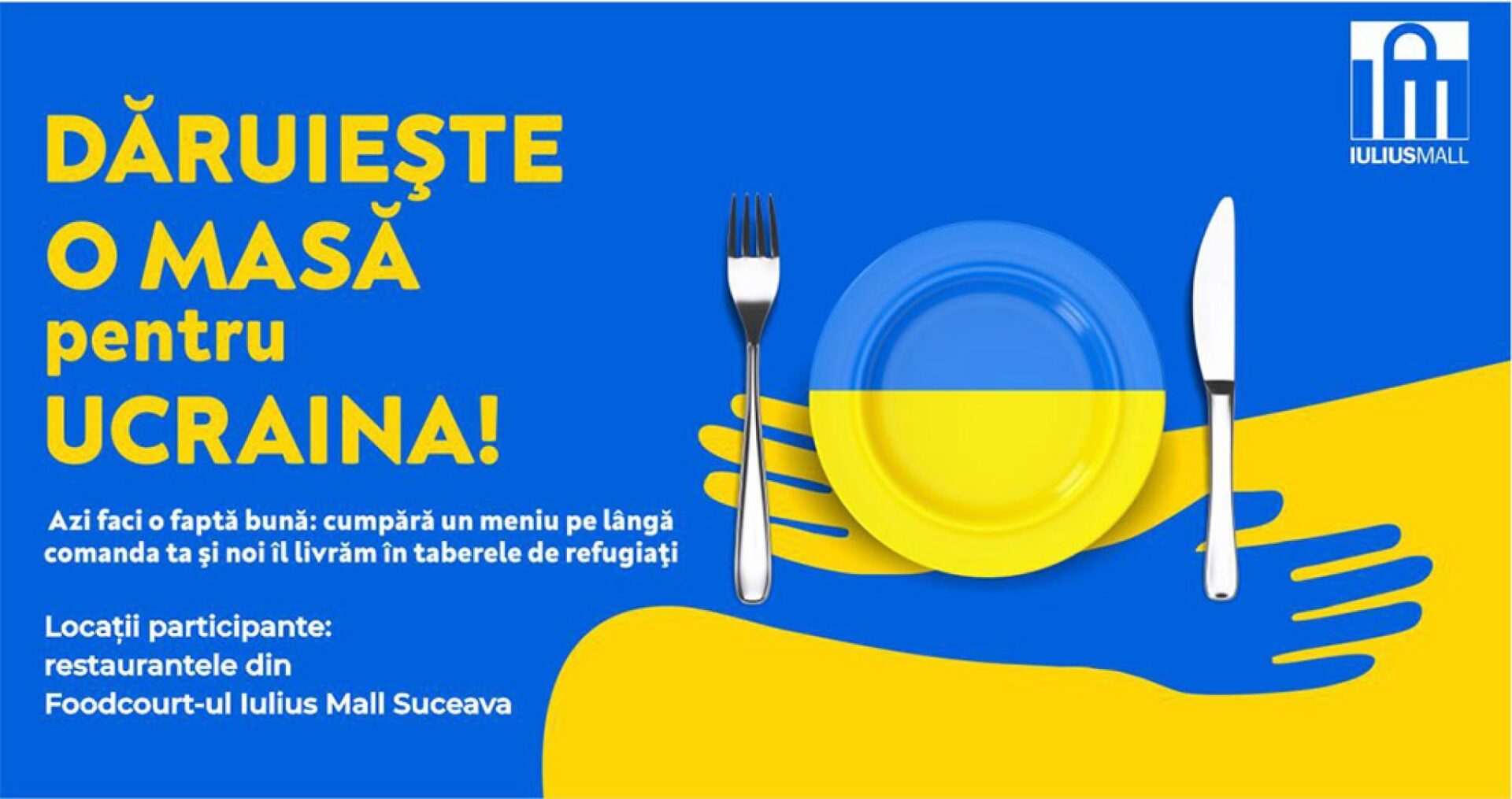 „Dăruiește o masă pentru Ucraina”, acțiune umanitară la restaurantele din Iulius Mall Suceava, Palas și Iulius Mall Iași