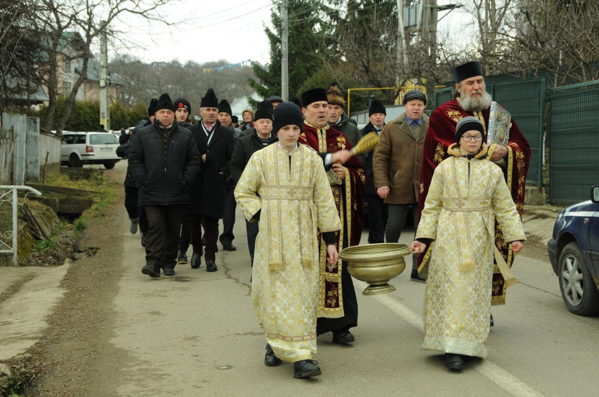 – Cu apa sfințită, preoții și pompierii, însoțiți de credincioși, au plecat apoi în procesiune prin comună