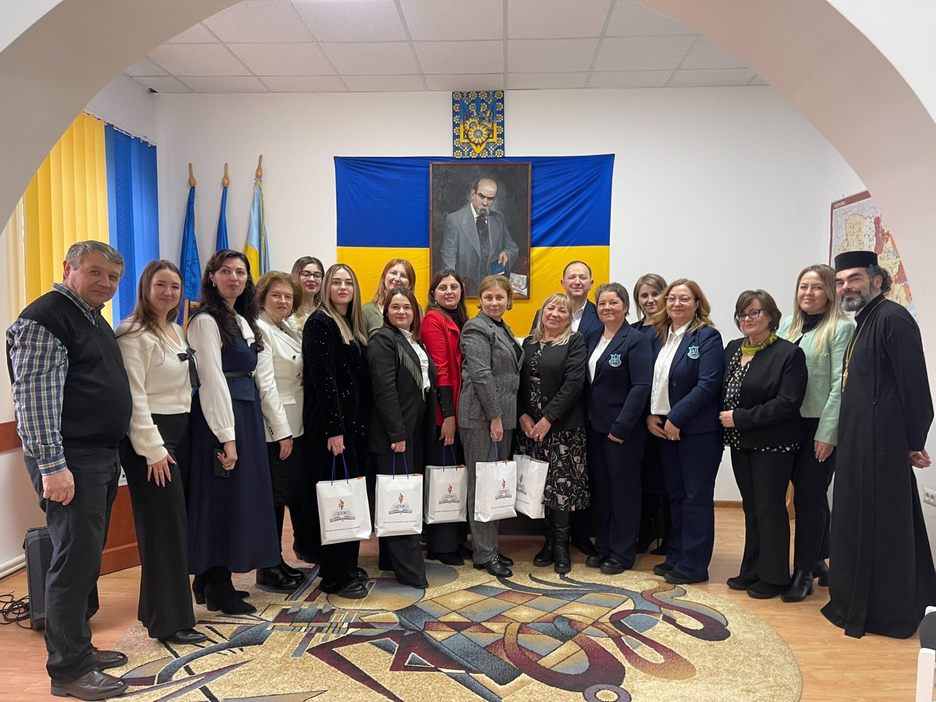 Momentul central al manifestării l-a constituit reînnoirea protocolului de colaborare transfrontalieră dintre Colegiul Național „Mihai Eminescu” din Suceava, Uniunea Ucrainenilor din România – Filiala Suceava și Liceul „Liderul – Ion Neculce” din Boian, regiunea Cernăuți, Ucraina, reprezentat de director prof. Svitlana Havka, din cadrul Proiectului ”Vecini în Europa Unită” semnat inițial în anul 2007, reluat în anul 2023. La eveniment a fost prezentă o delegație din Ucraina, formată din cadre didactice și specialiști în educație: Olga Ostafii, metodist în cadrul Centrului de Calitate a Educației al Administrației Militare Regionale de Stat Cernăuți, alături de prof. Semeniuc Ana, director adjunct, prof. Morar Aliona, director adjunct, prof. Bzovi Karyna-Mariia, Harasym Hanna, psiholog. Coordonarea proiectului va fi asigurată de reprezentanții legali ai instituțiilor partenere, alături de prof. Martineac Delia și metodistul Olga Ostafi, garantând o implementare coerentă și eficientă a activităților propuse.