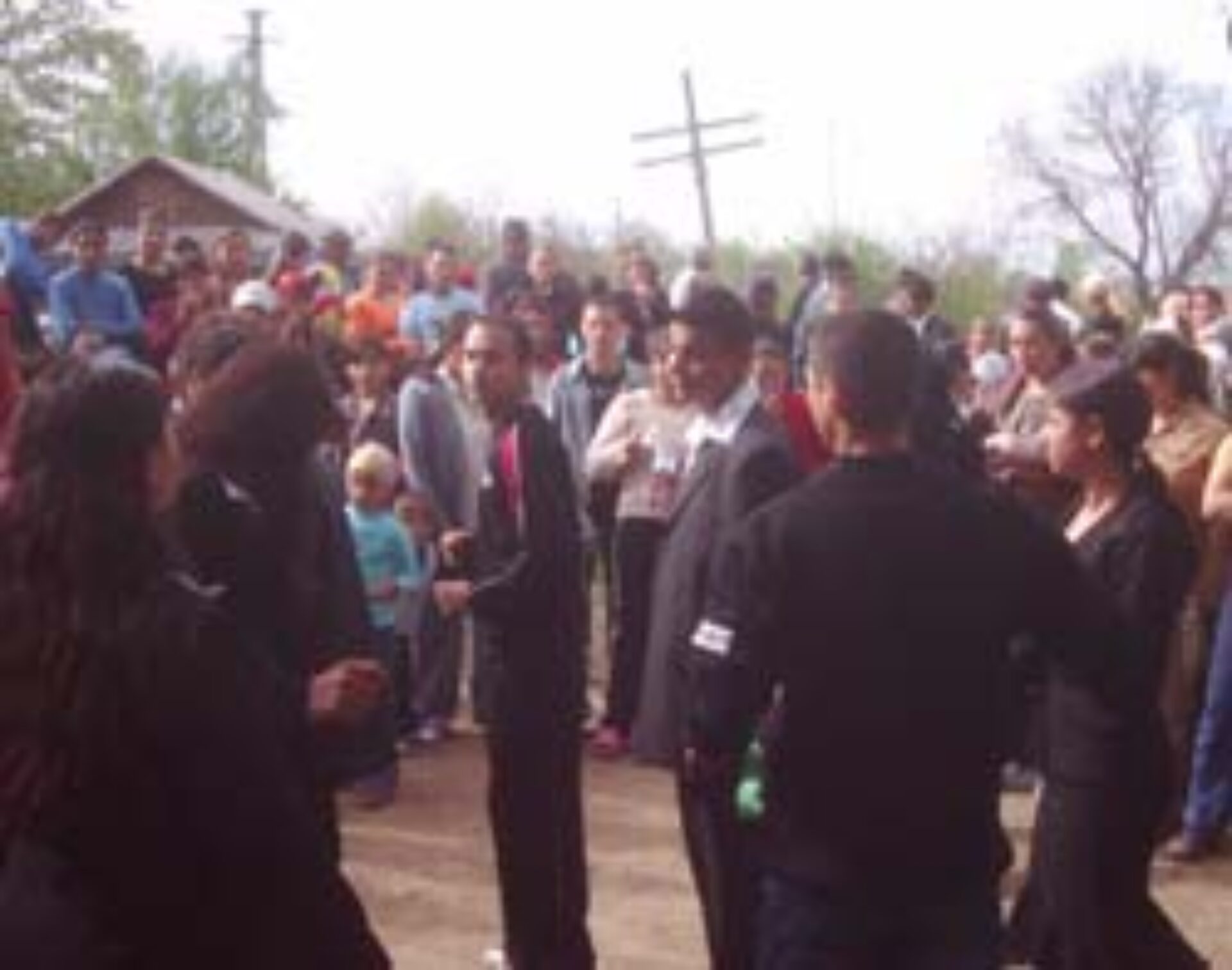 De la o extremă la cealaltă. Cam așa s-ar putea descrie atmosfera de la Gulia-Dolhasca din deja tradiționala zi a Paștelui țiganilor, sau Joia Verde cum mai este denumită. Chiar în apropierea pădurii unde se adună an de an țiganii din tot județul Suceava, ne întâmpină o mare de oameni. Surprinși, ne gândim că am întârziat și petrecerea a început deja. Oamenii așteaptă însă altceva. „Jean Constantin”, așa cum era poreclit cel care îi amuza cu glumele lor a plecat dintre ei și semenii vor să-i aducă un ultim omagiu, să-l petreacă la groapă, pe ultimul său drum. A murit dintr-o prostie, din cauza mâncării, cum spun apropiații. Trebuia îngropat miercuri, dar din cauza medicului care nu a venit la timp pentru a elibera certificatul de deces, procesiunea s-a amânat pentru joi. Când a plecat de acasă pentru ultima dată, ceilalți săteni din Gulia și musafirii se adunaseră deja pentru a da drumul petrecerii. Din respect pentru „nea Jean” au mai așteptat vreo oră. Câțiva lăutari tocmiți pentru petrecere i-au cântat la căpătâi pe ultimul drum. Când preoții au terminat slujba de înmormântare, ceilalți au trecut la lucrurile lumești. Deh, viața trebuie să-și continue cursul. Dintr-o Dacie papuc se descarcă orga și boxele. De la un alt sătean se mai aduc accesoriile necesare. Dintre copacii înverziți se aud primele acorduri muzicale. Este semnalul așteptat de toată lumea. De la cel cu biberonul în gură până la cei fără dinți se vine la petrecut. Nici animalele nu rezistă tentației. După câțiva copaci un porc grohăie în ritm de manea, iar câteva rațe dau din coadă privind cu jind la poporul adunat pentru a sărbători așa cum se cuvine. Muzicanții își intră în mână mai greu, au probleme cu acordurile. Mulțimea de curioși se adună roată. Care cu o bere în mână, care cu un suc, toți așteaptă ceva. Acel ceva care să dea tonul distracției. Încep să curgă dedicațiile: „De la nea Vasile pentru soția sa frumoasă”, „100.000 de lei de la cel mai bun băiat”. Și pirandele încep să danseze. Dau din buric cu foc, deși nu mai seamănă deloc cu ceea ce știam noi din reportajele de televiziune. Nici muzica nu mai e aceeași, dar lumea e într-o permanentă schimbare. La fel și obiceiurile țiganilor din Joia Verde. Fetele nu-și mai pun straie tradiționale și nici nu mai umblă desculțe. Au totuși o problemă: tocurile de la papucii moderni le intră în pământul reavăn din pădure. Nu e nici o problemă, și banii pentru muzicanți zboară din toate părțile și se lipesc de sol. Lumea e fericită și se distrează. Că doar o dată pe an e Paștele țiganilor.