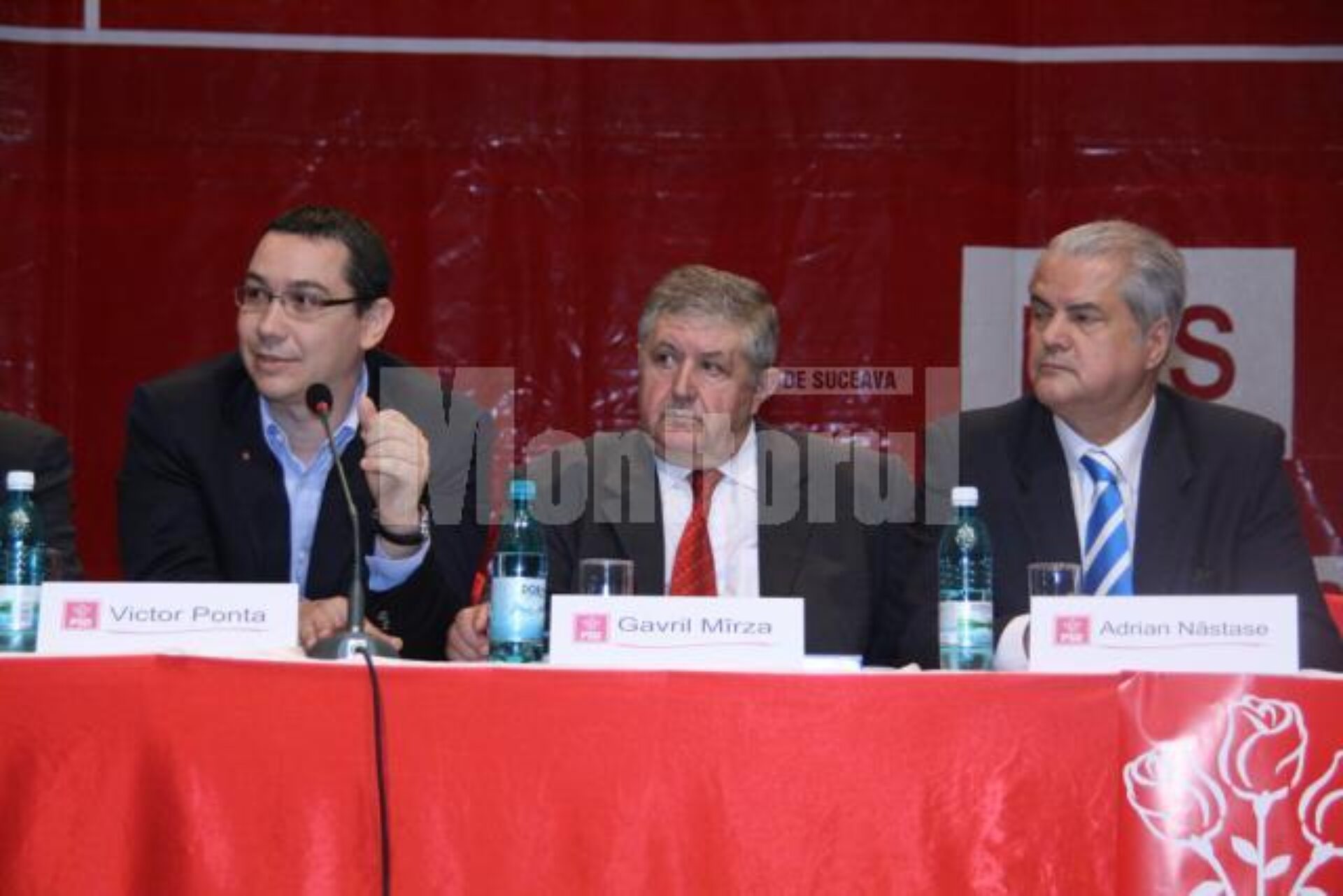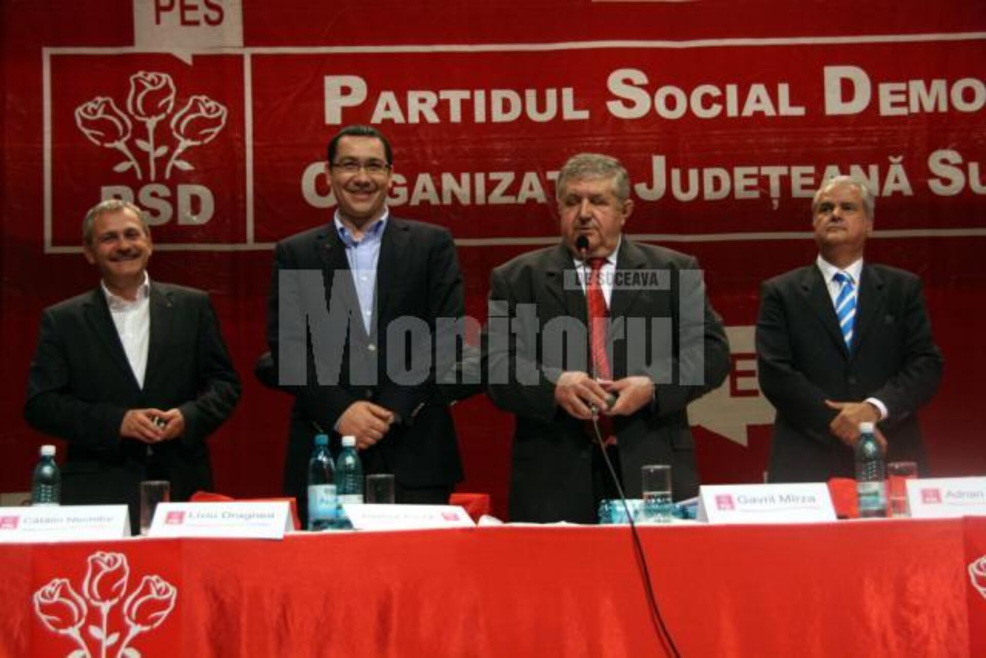 Cu îndemnuri la unitate și spirit de echipă și mulțumiri pe toată linia pentru Gavril Mîrza, Victor Ponta și Adrian Năstase și-au arătat străveziu opțiunea pentru Eugen Bejinariu și i-au trecut conducerea lucrărilor conferinței județene președintelui încă în funcție al PSD Suceava, deoarece ei au fost nevoiți să plece spre București.