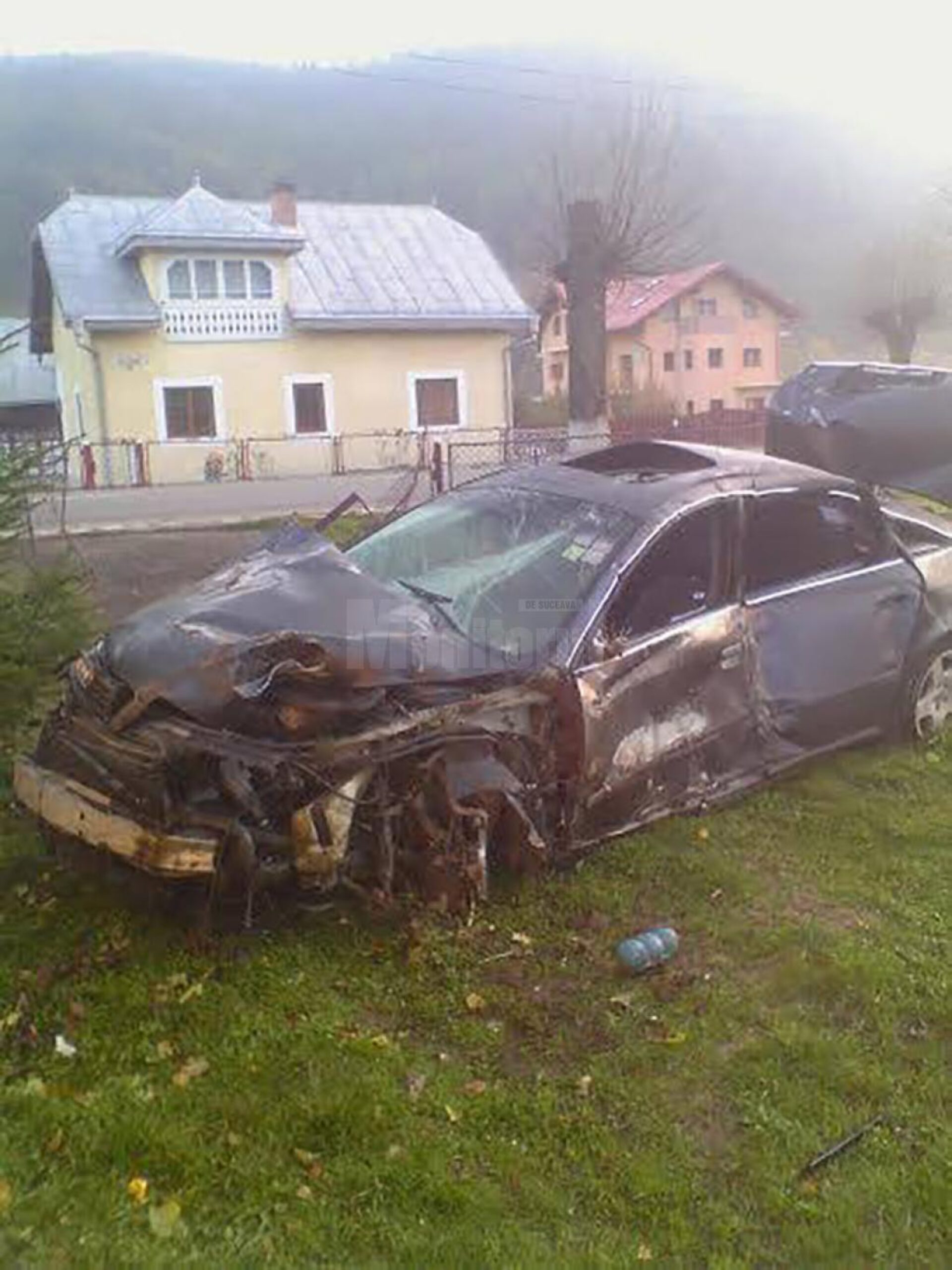 Autoturismul a lovit mai multe garduri, un copac, s-a răsturnat iar cei doi tineri, au fost găsiți proiectați în afara mașinii
