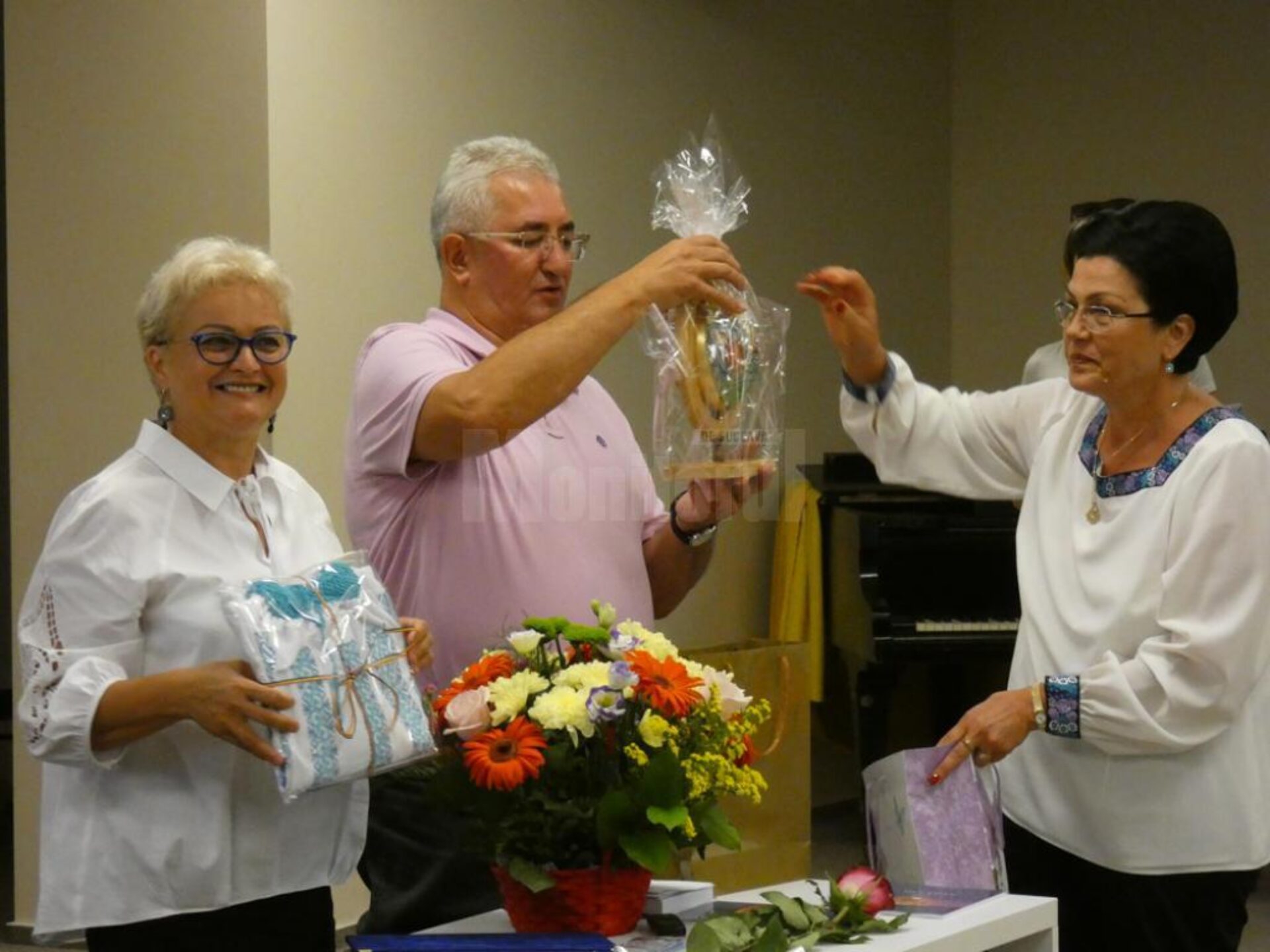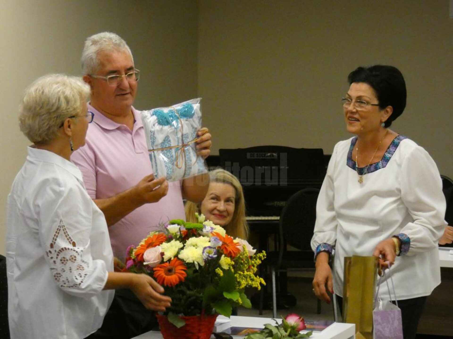 Pe lângă „Diploma de Excelență” și buchetul de flori din partea Primăriei Suceava, Gabriela Baddour a primit și un suvenir din partea familiei Lungu – o ie frumoasă și un ou uriaș, pictat, cu Maica Domnului, din Bucovina.
