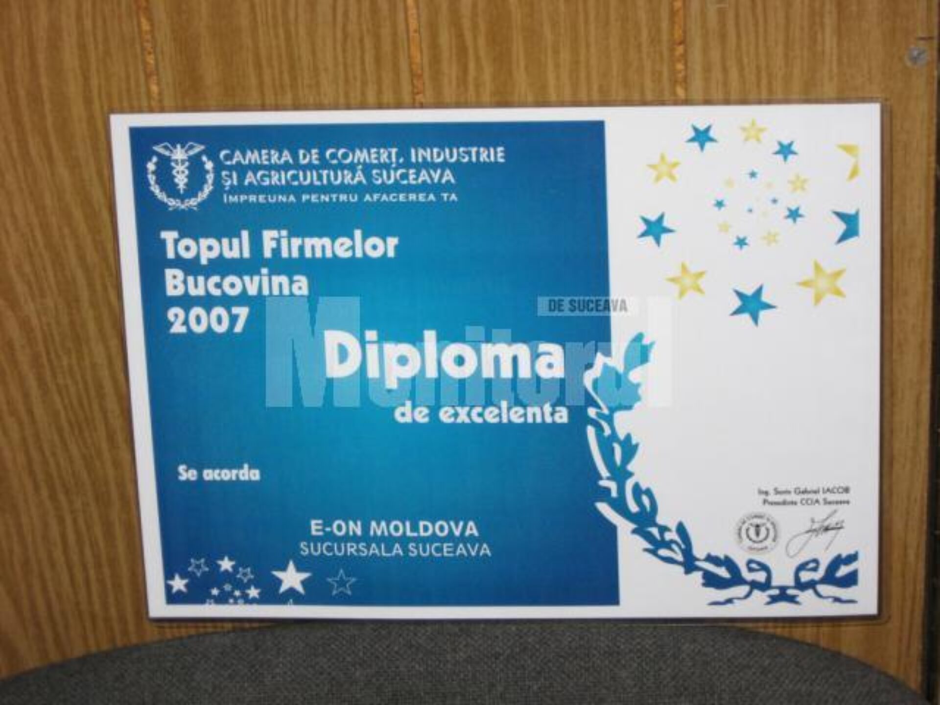 Pentru al doilea an consecutiv, E.ON Moldova – Sucursala Suceava a primit, din partea Camerei de Comerț, Industrie și Agricultură Suceava, „Diplomă de excelență” pentru performanțele economice pe anul 2007.