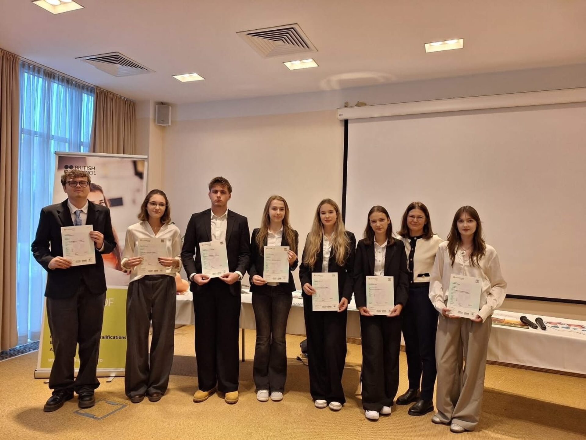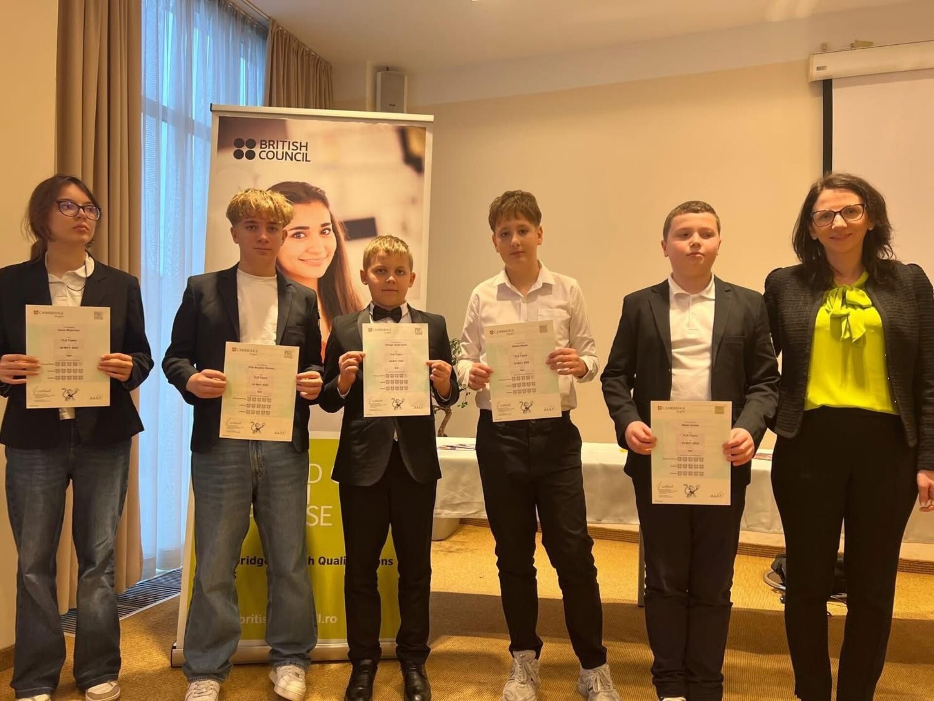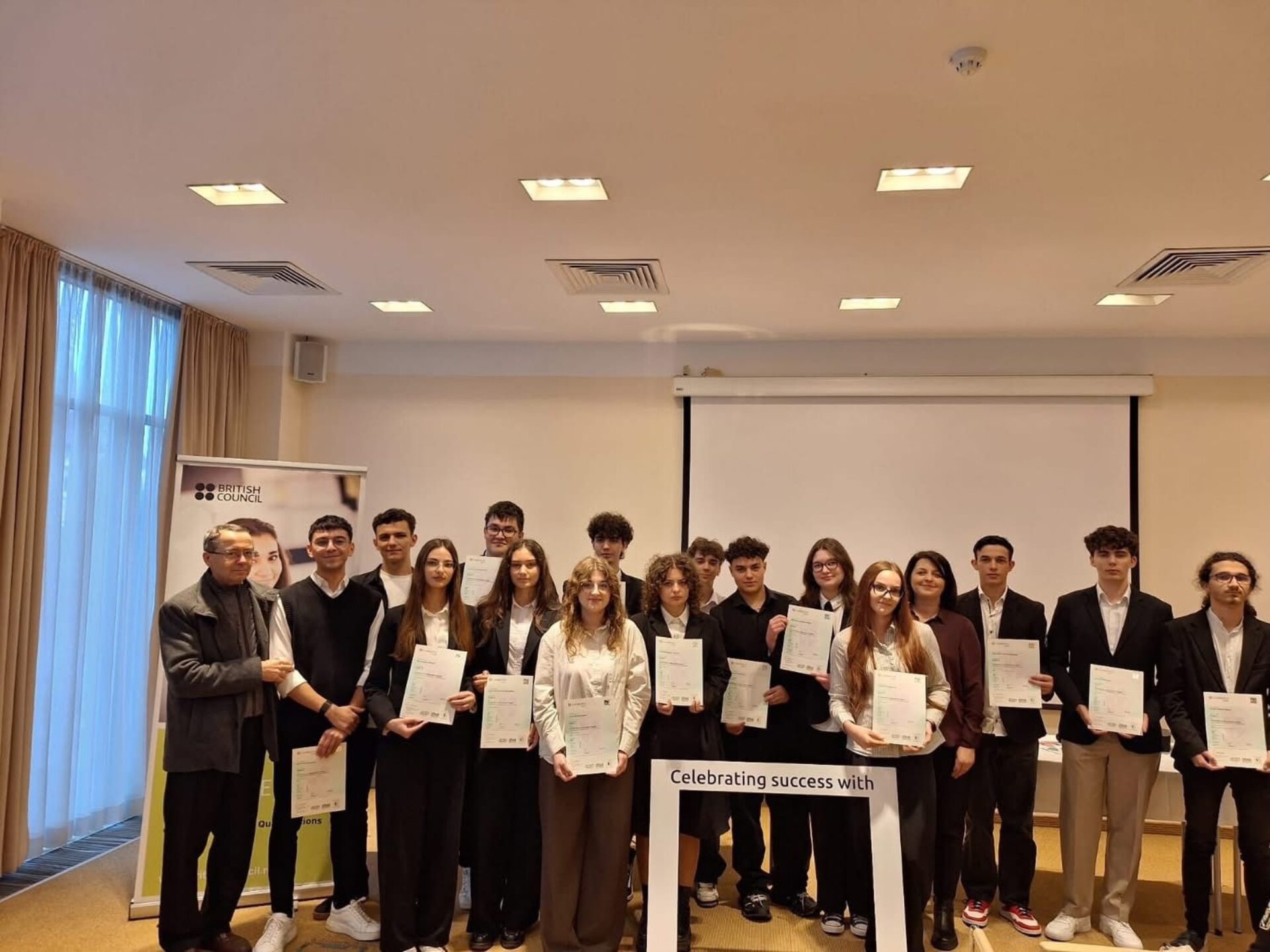 În prezența reprezentantului British Council Iași – Alexandra Râlea, a directorului colegiului – prof. Adrian Puiu, a cadrelor didactice care alcătuiesc catedra de limbă engleză a colegiului, precum și a părinților emoționați, elevii merituoși s-au bucurat să intre în posesia valoroaselor certificate internaționale Cambridge.