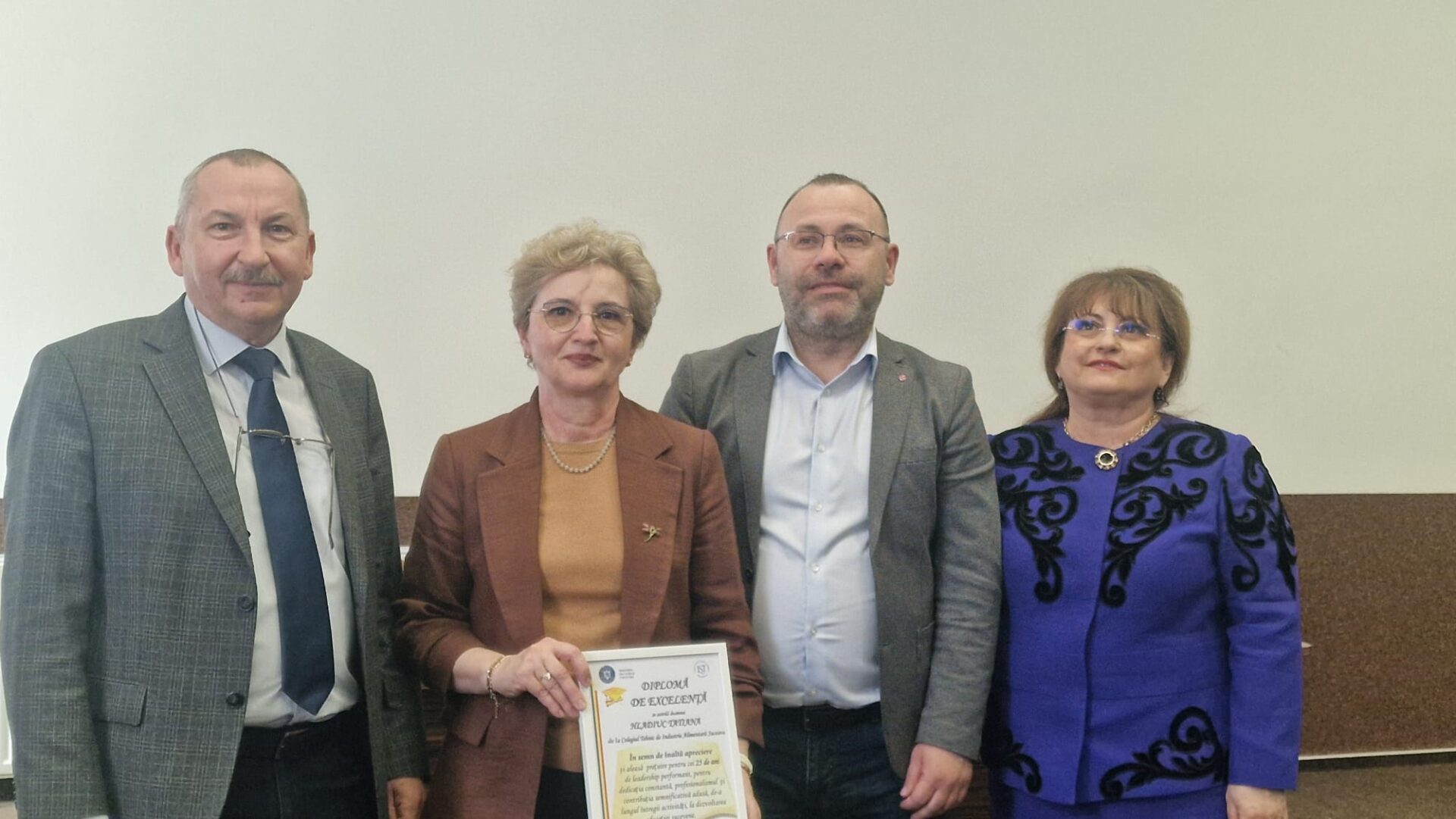 Colegiul Tehnic de Industrie Alimentară Suceava a organizat joi, 16 aprilie, o festivitate specială, sub semnul recunoștinței și al emoției, al respectului și aprecierii, care a marcat pensionarea prof. Tatiana Hladiuc, directoarea colegiului, și a altor două cadre didactice.